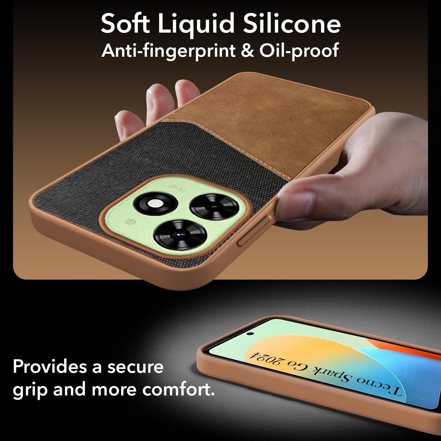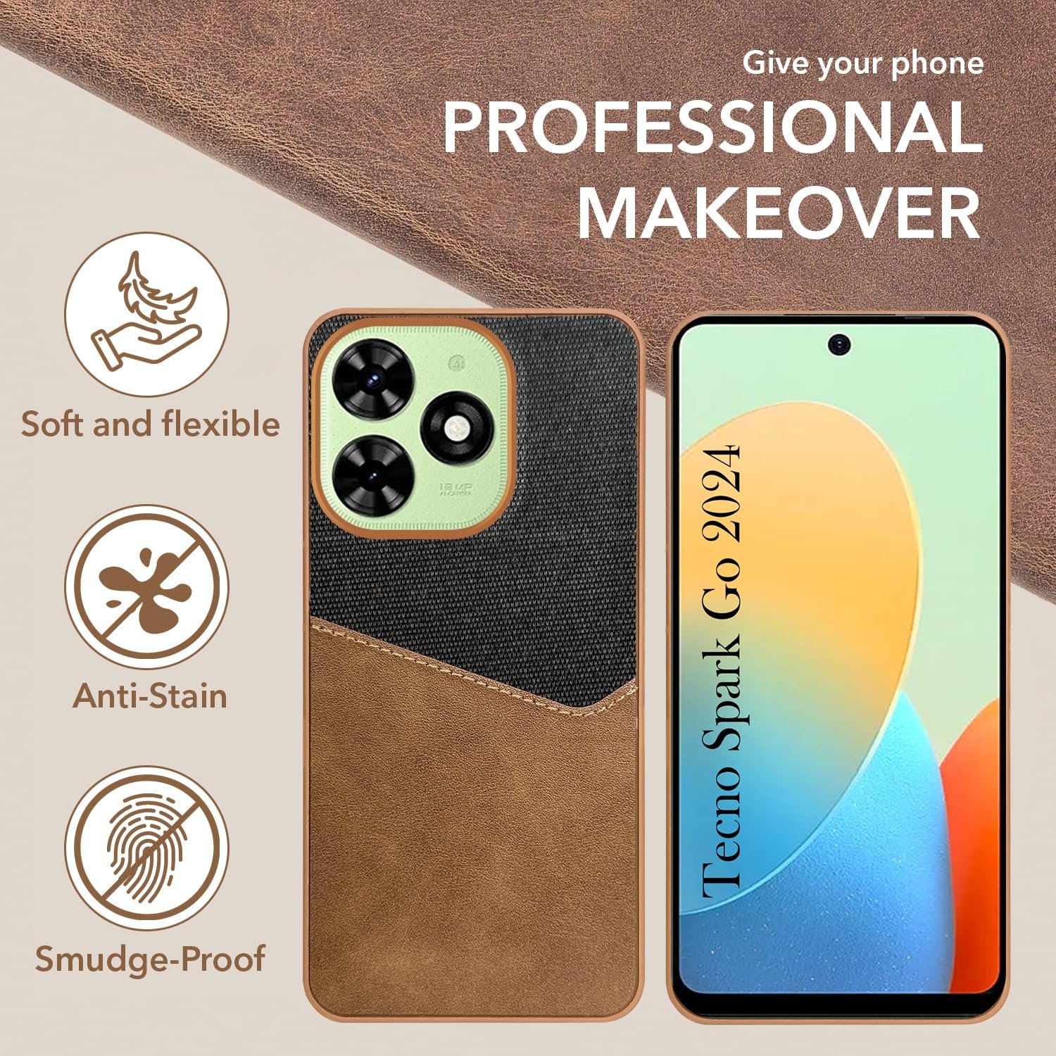 Jkobi Back Cover Case for Tecno Spark Go 2024 (Dual PU Leather Stitch | Professional Minimalist | Soft and Flexible)