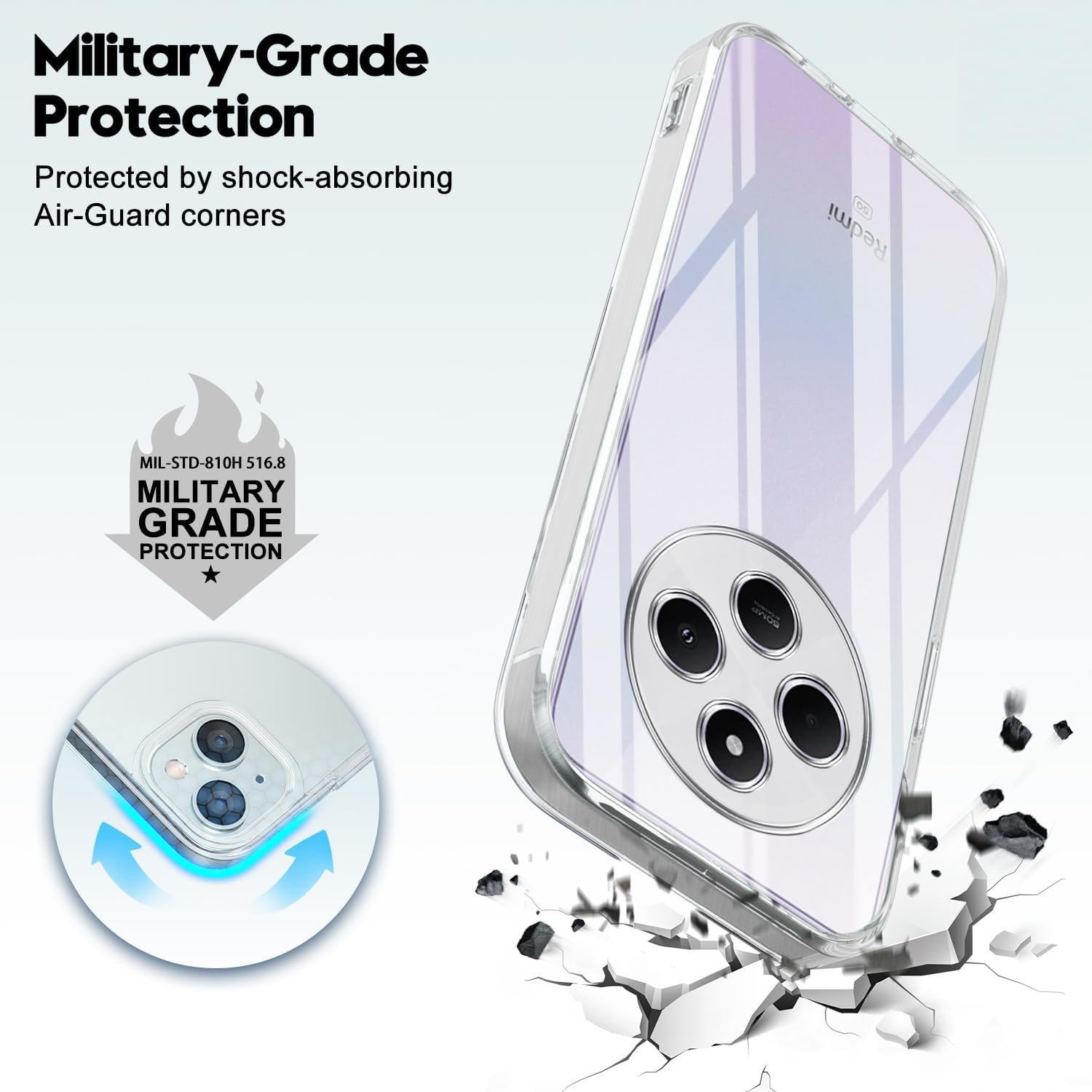 amazon basics Back Case Cover for Samsung Galaxy M05 | Compatible for Samsung Galaxy M05 Back Case Cover | Case Cover with Camera Protection | (TPU + PC | Transparent)