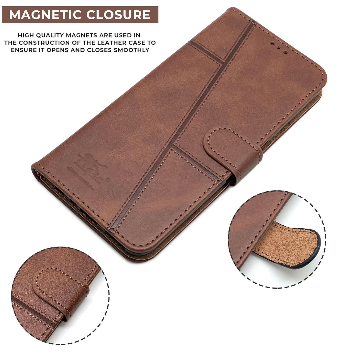 Stylish Stitched Designed in a Timeless Classic Business Style matching the Personality of both Men and Women Perfectly.Premium Faux Leather Finish. A Contemporary Design for an everlasting experience.Premium Material Case – Made from high quality PU leather, delivers an anti-slip grip while reinforced TPU tray effectively protects your phone from accidental shock and dropping.