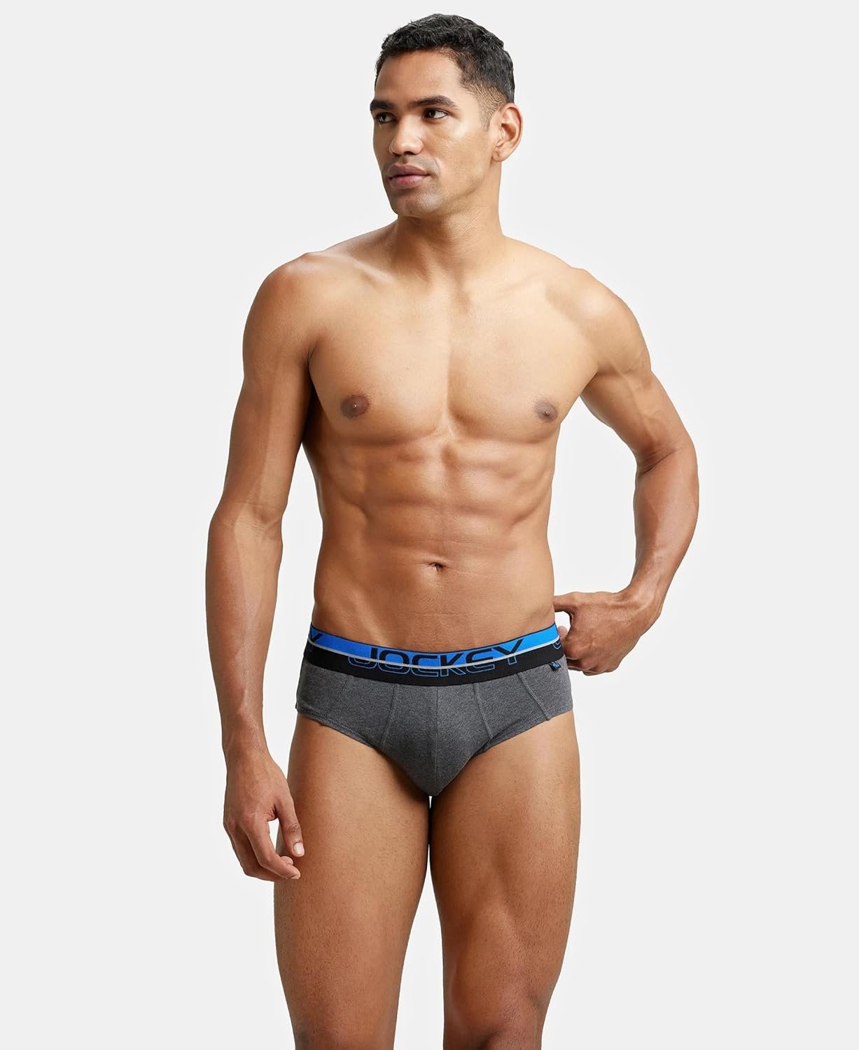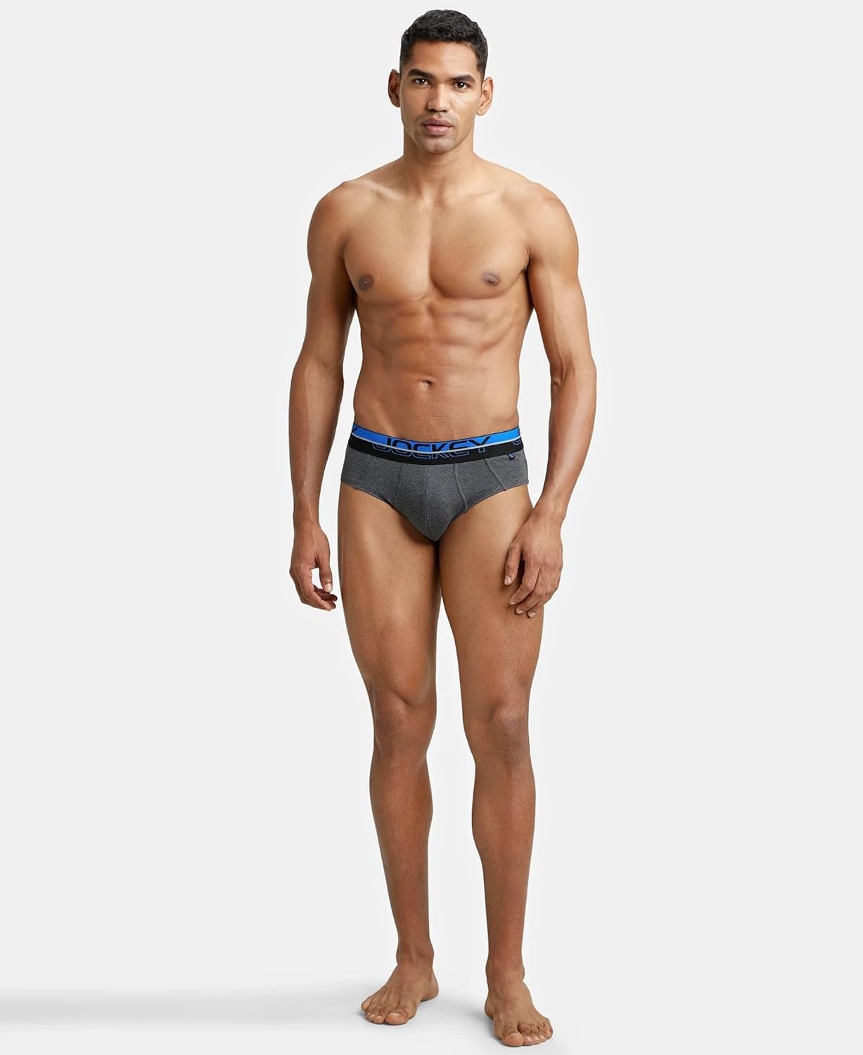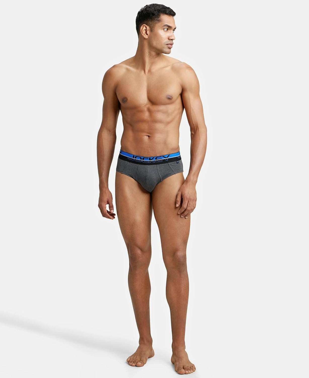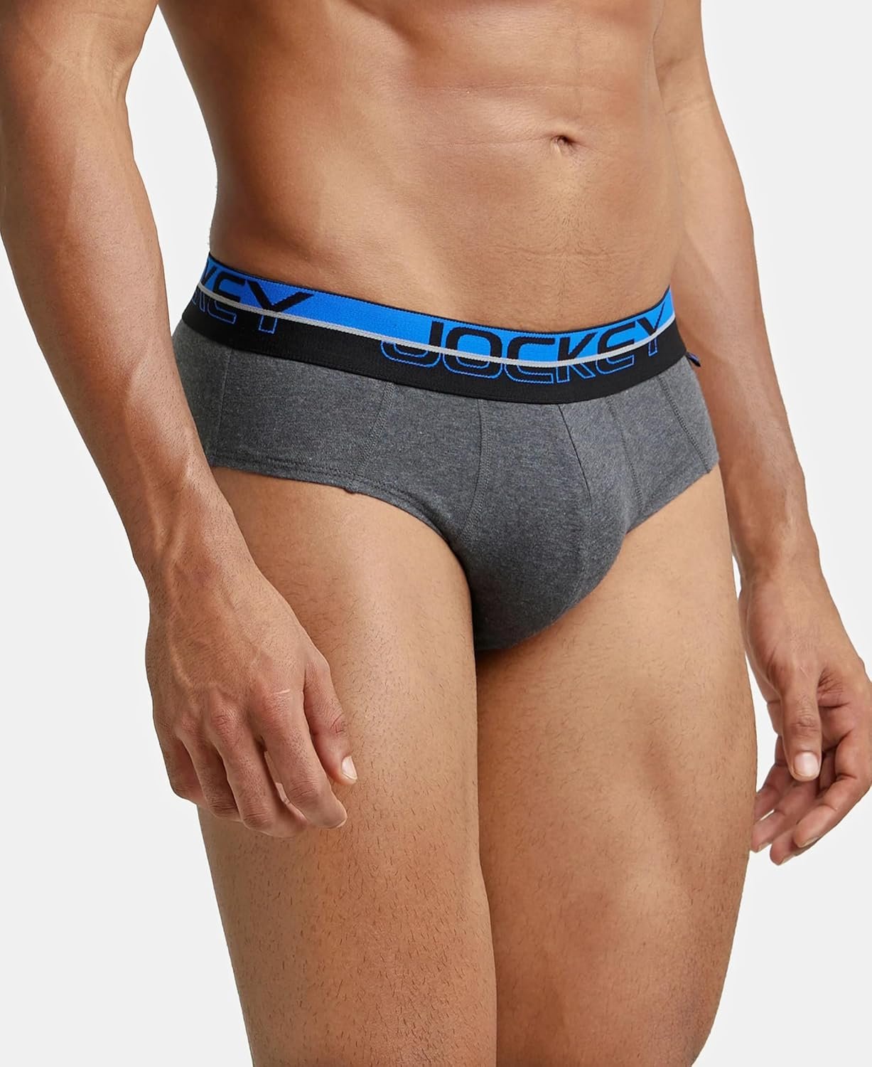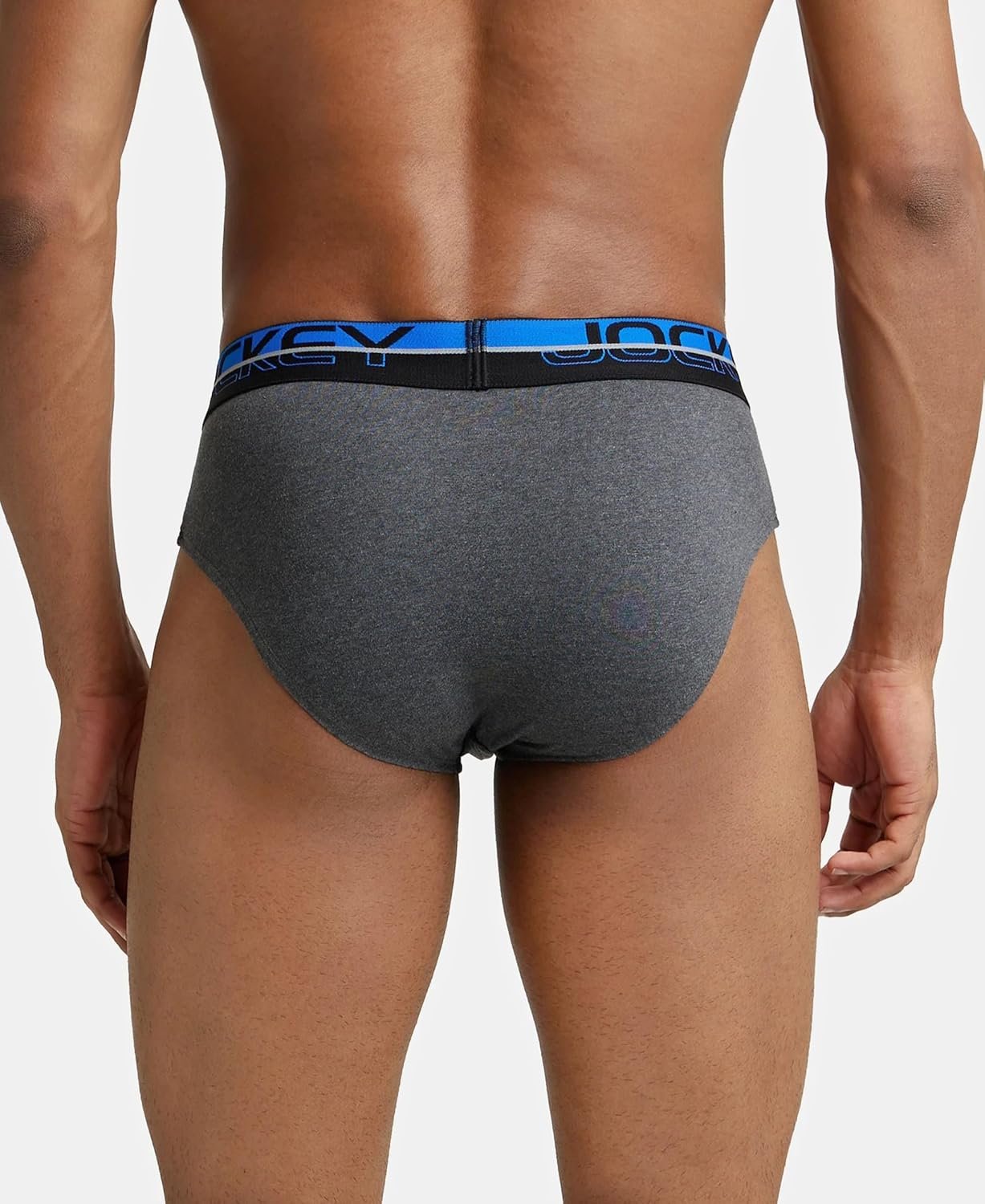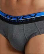 Jockey Men’s Cotton Square Cut Brief (Pack of 1) (FP01_Charcoal Melange_X-Large_Charcoal Melange & Rich Royal Blue_XL)