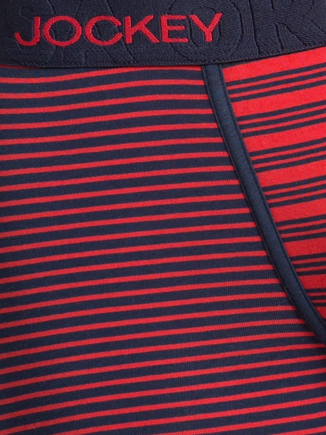 Super combed cotton elastane stretch fabric. Unique and youthful combo of yarn dyed stripes. Low rise short trunk. Double layered contoured pouch. Durable and soft high tech waistband. Label free for all day comfort.
