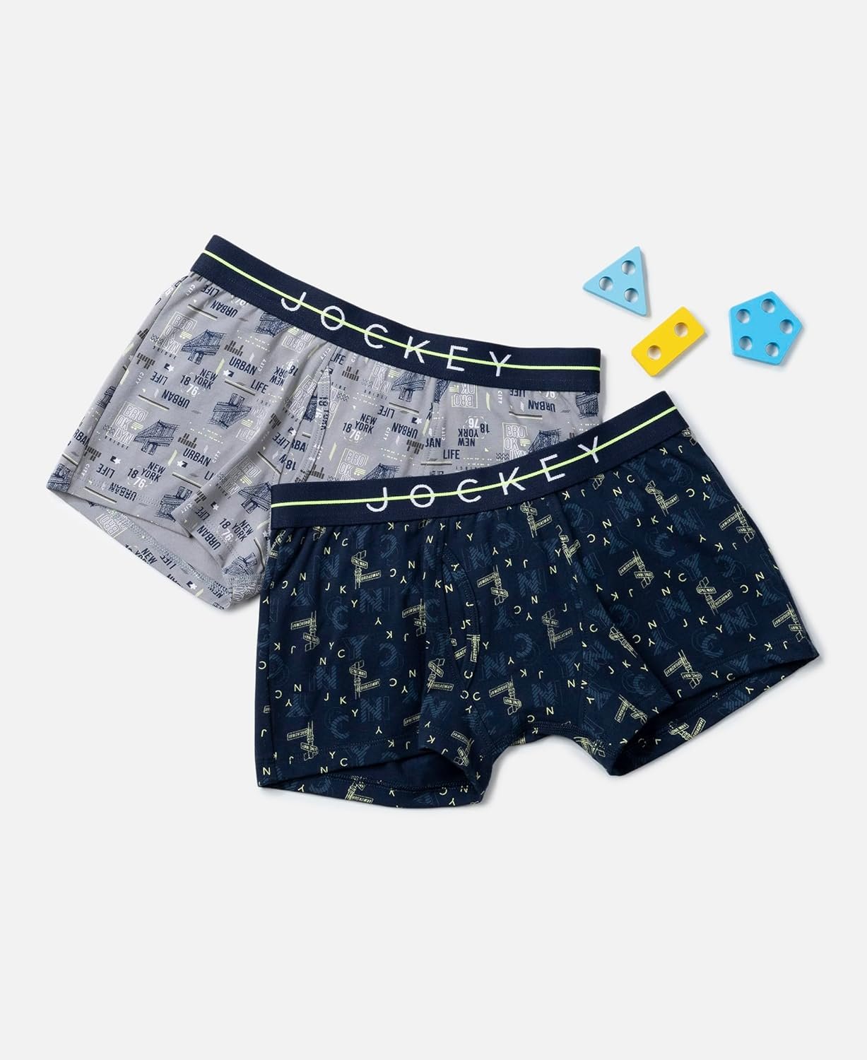 Jockey NB02 Boy’s Super Combed Cotton Elastane Stretch Printed Trunk with Front Open Fly and Ultrasoft Waistband (Pack of 2_Colors & Prints May Vary)