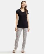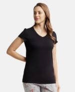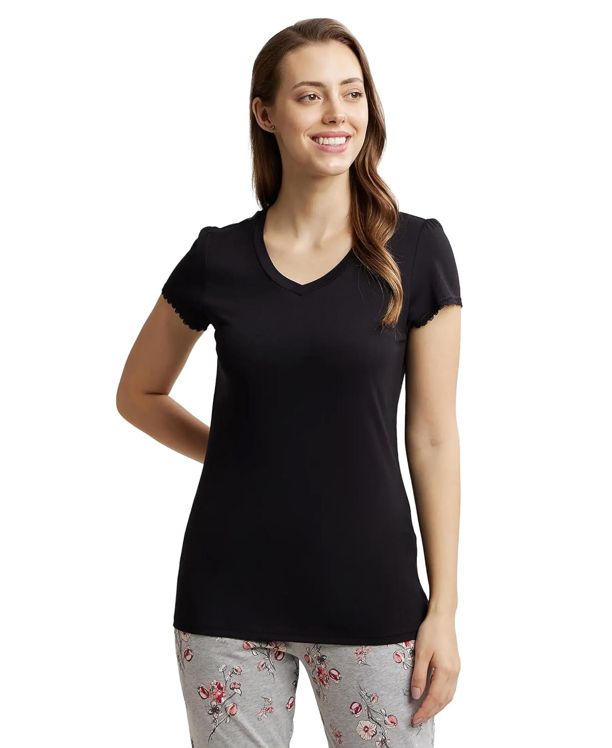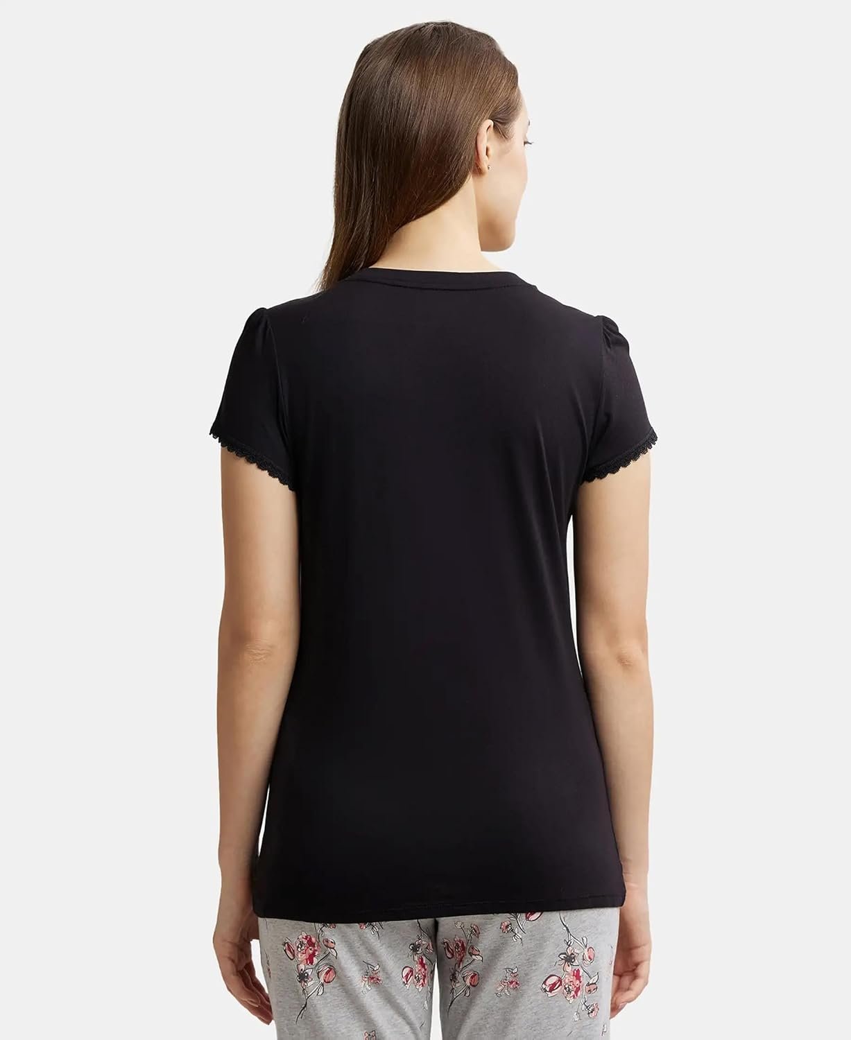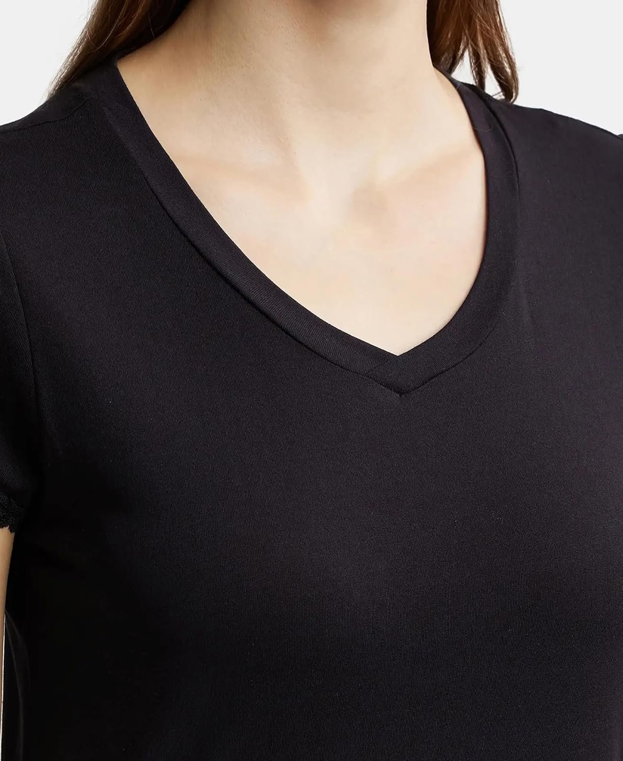 Jockey RX12 Women’s Micro Modal Cotton Relaxed Fit Solid V Neck Half Sleeve T-Shirt with Lace Trim On Sleeves