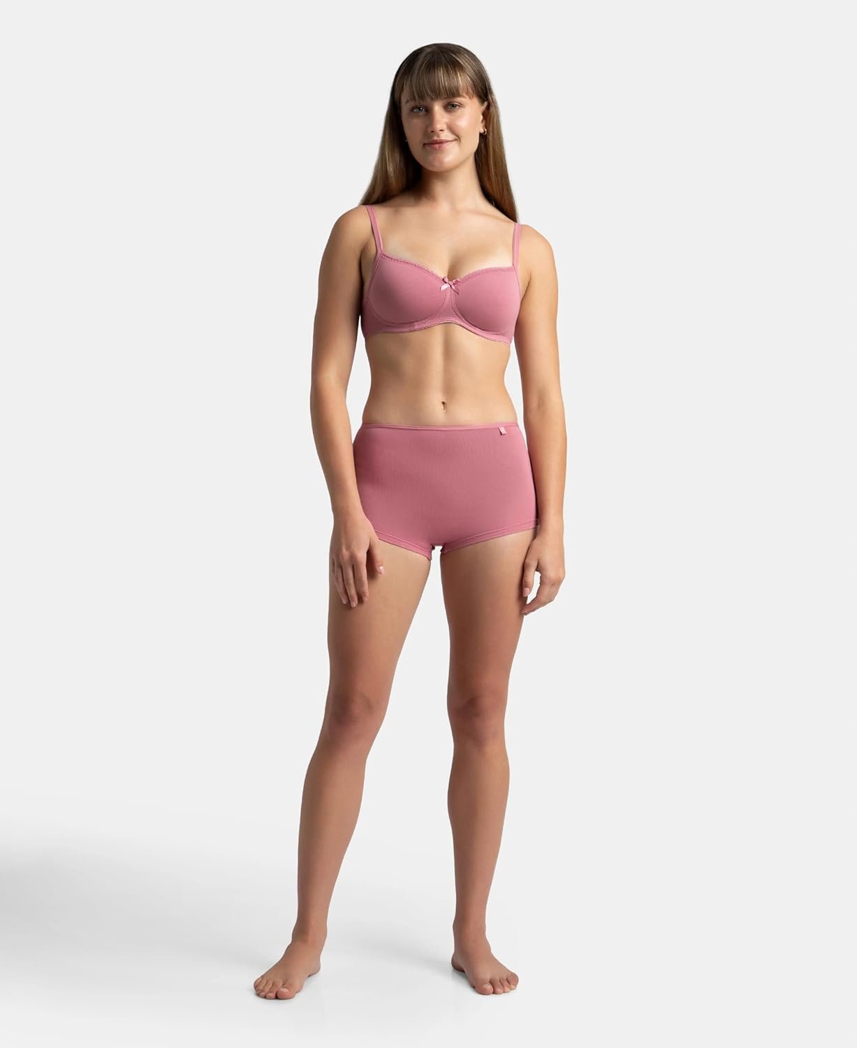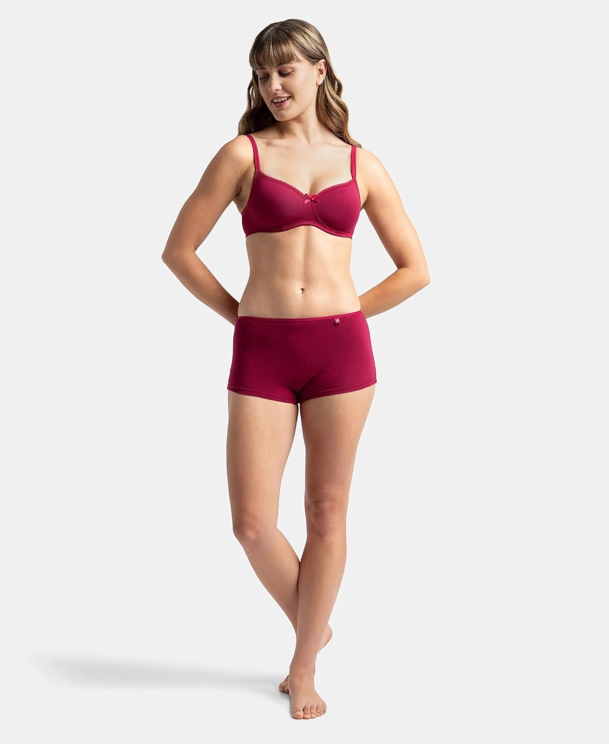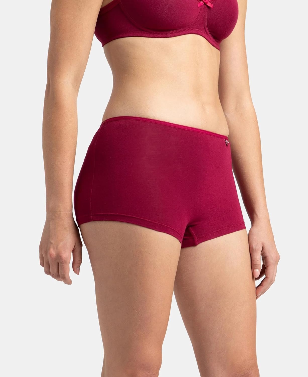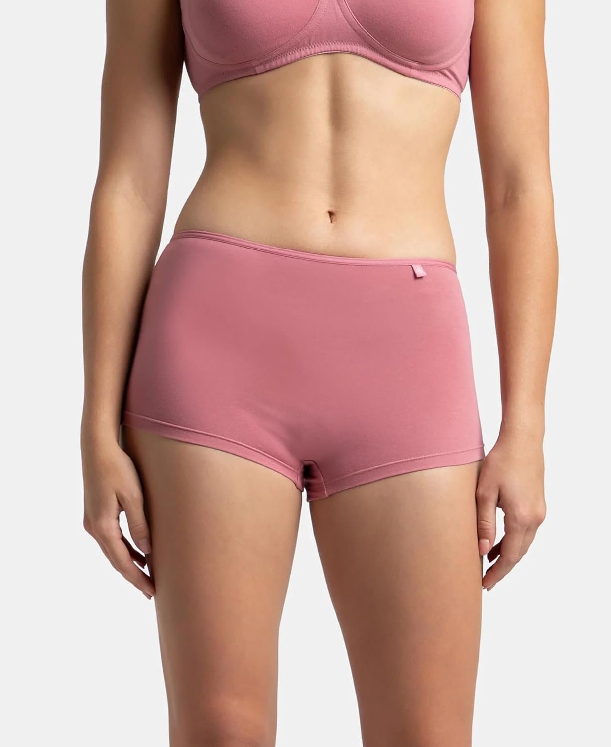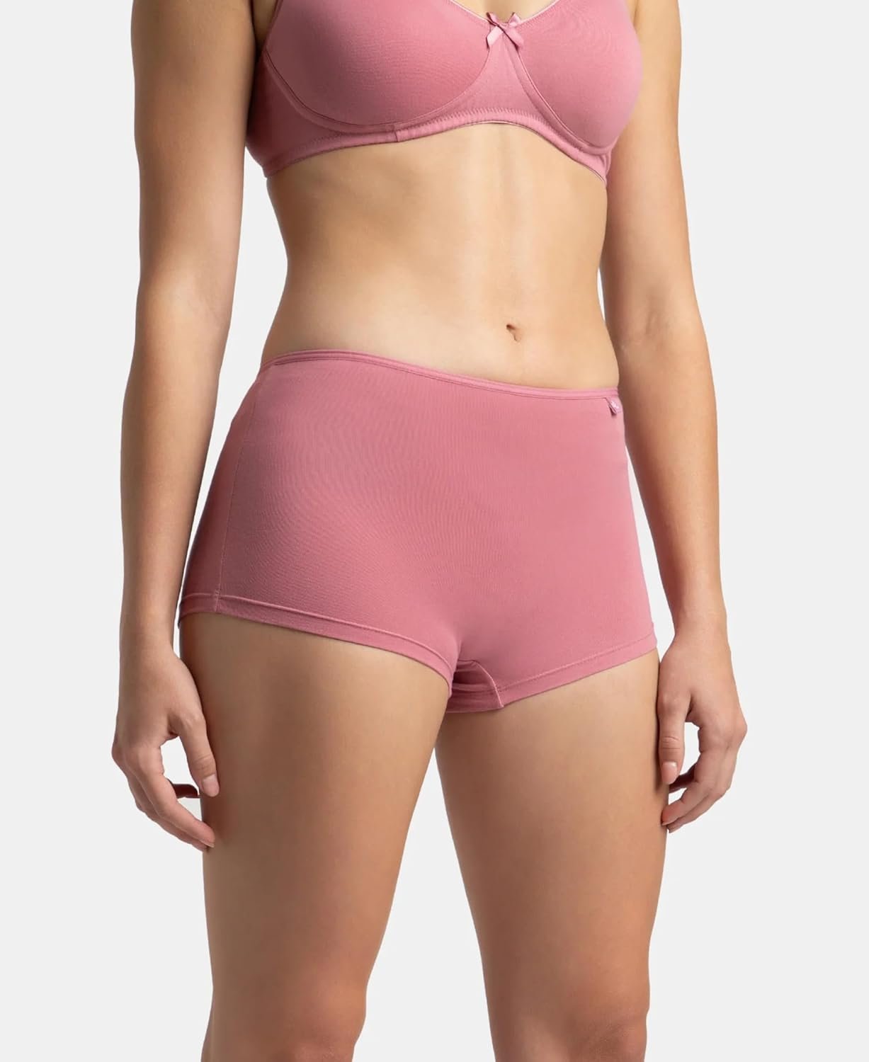 Jockey SS04 Women’s High Coverage Super Combed Cotton Elastane Stretch Mid Waist Boy Shorts with Concealed Waistband and Stay Fresh Treatment (Pack of 2)