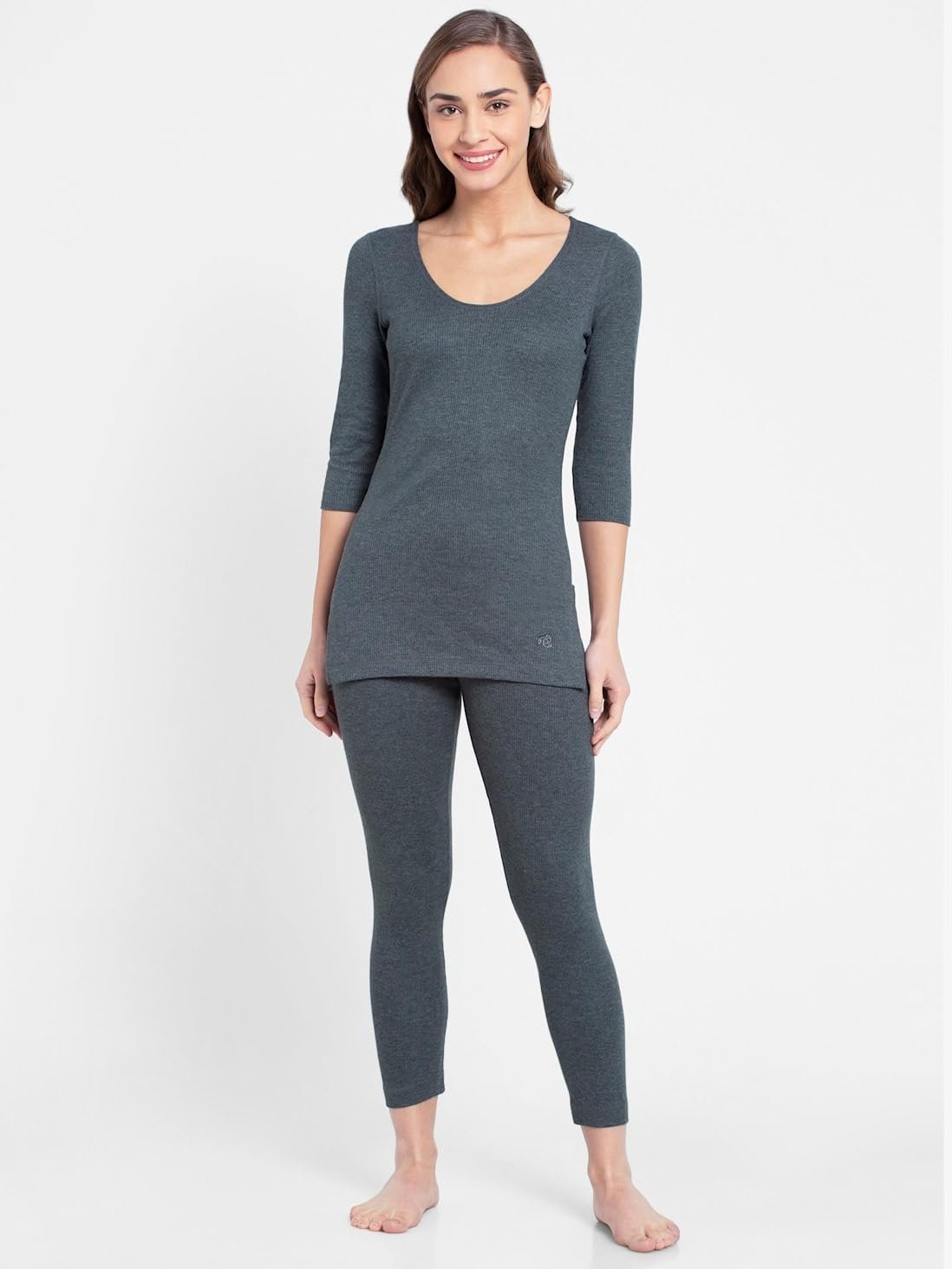 Jockey Women’s Cotton Thermal Set (Top & Bottom Both, Charcoal)