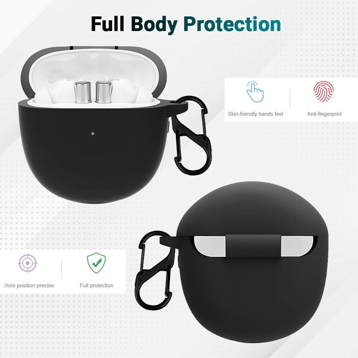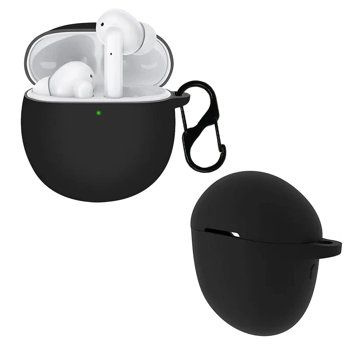 KACA Protective Shockproof Silicone Cover Case with Buckle Compatible with Realme Buds Air 2 / Air Pro (Black)