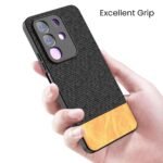 Kapa Soft Fabric & Leather Hybrid Protective Back Cover for Iqoo Z10x 5G / Vivo T4x 5G | Shockproof Slim Hard Anti Slip Back Case (Black,Brown)