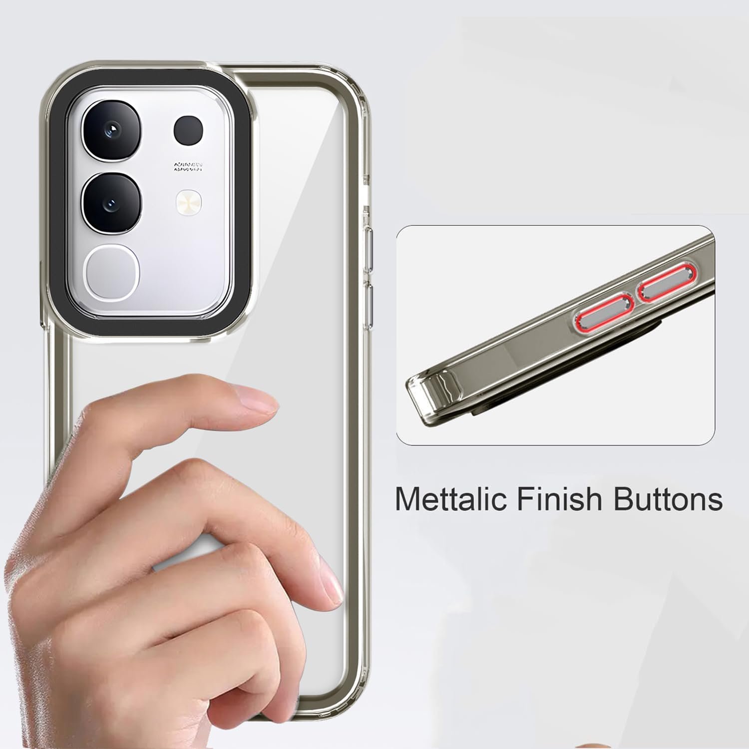 Kapa Warrior Acrylic Clear Back Cover for Vivo T4X 5G | Slim Shockproof [Military Grade Protection] Hybrid Bumper Case (Grey Sides)