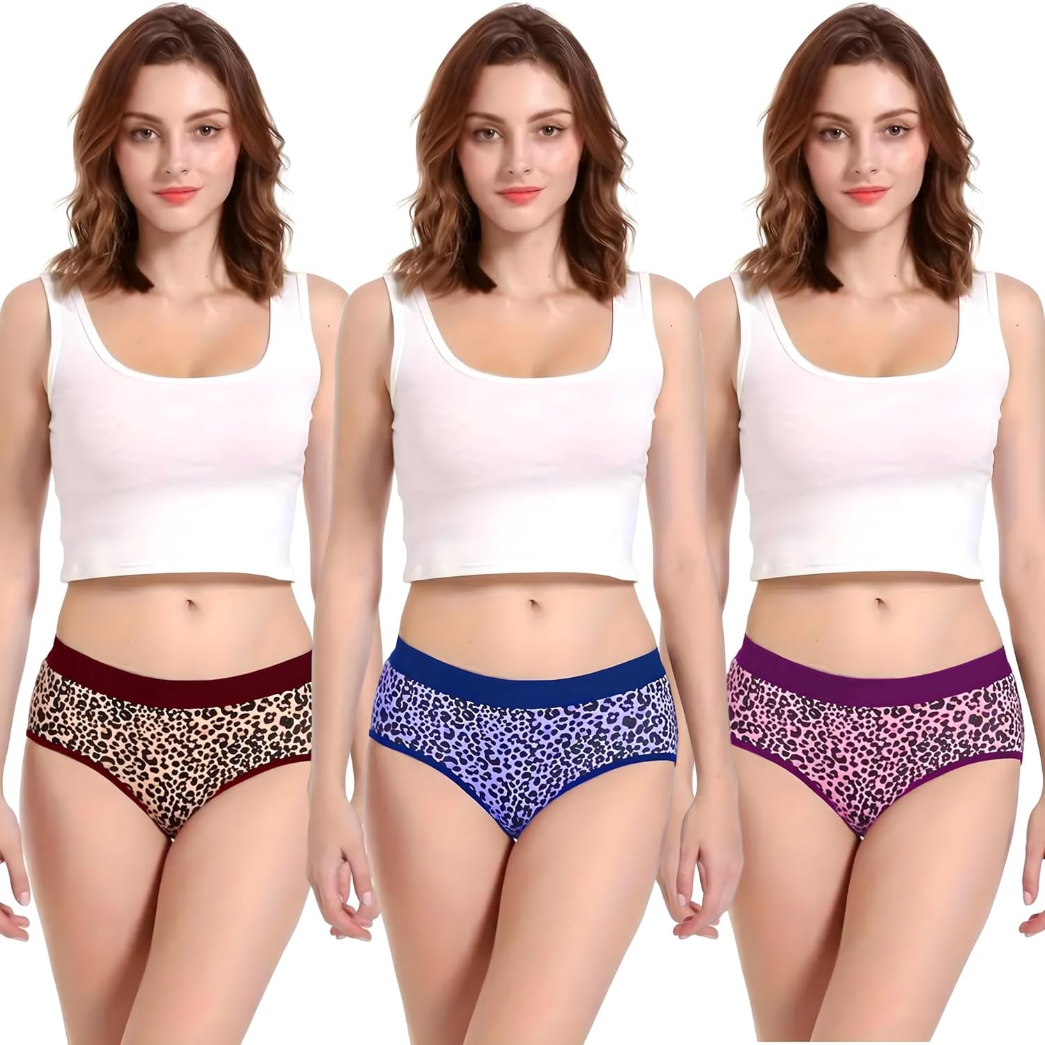 ✔️ Pack of 3: Stylish multicolour briefs with chic leopard prints