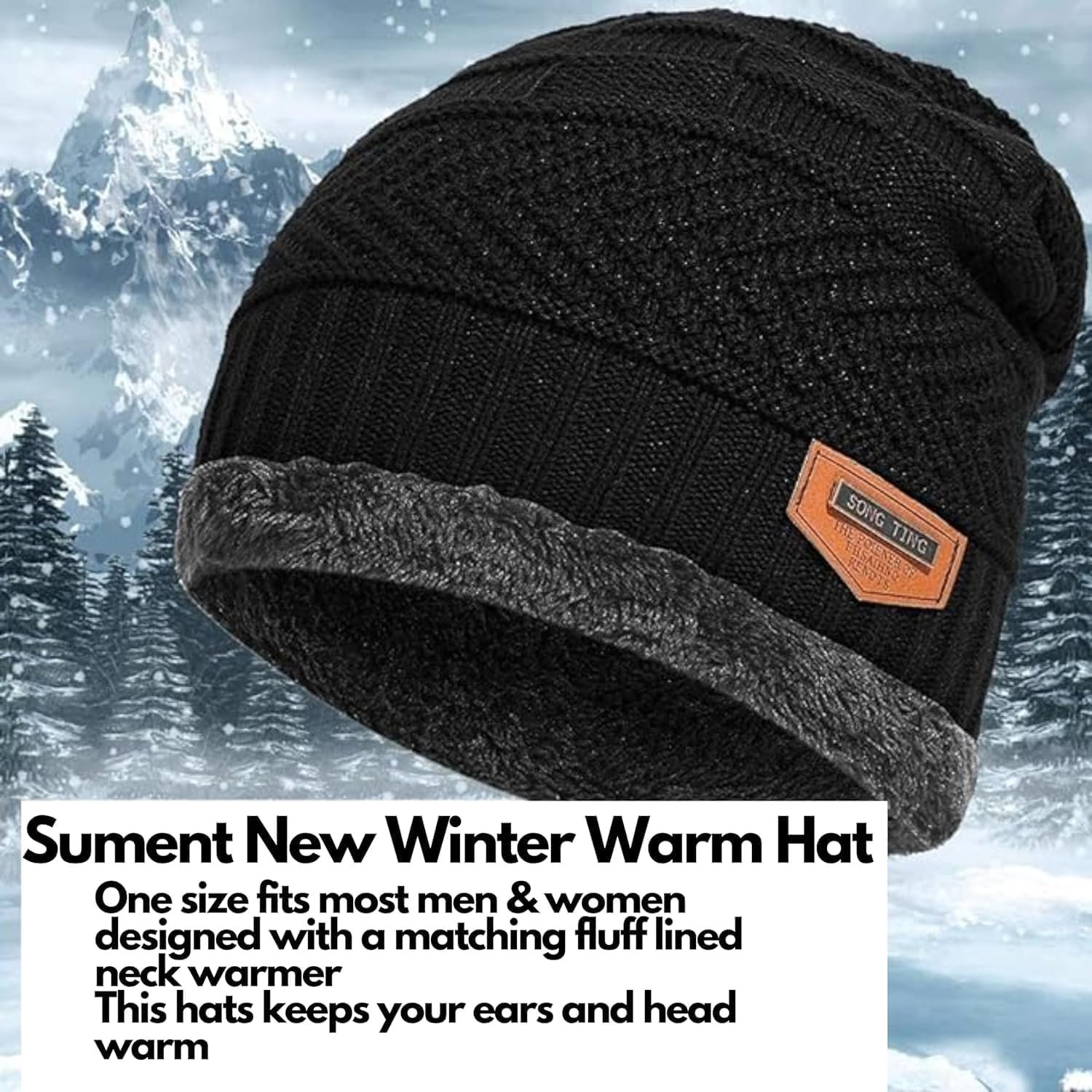 KIDBIRD Beanie Woolen Cap Hat and Neck Warmer Scarf Set for Men & Women (2 Piece) (Black)
