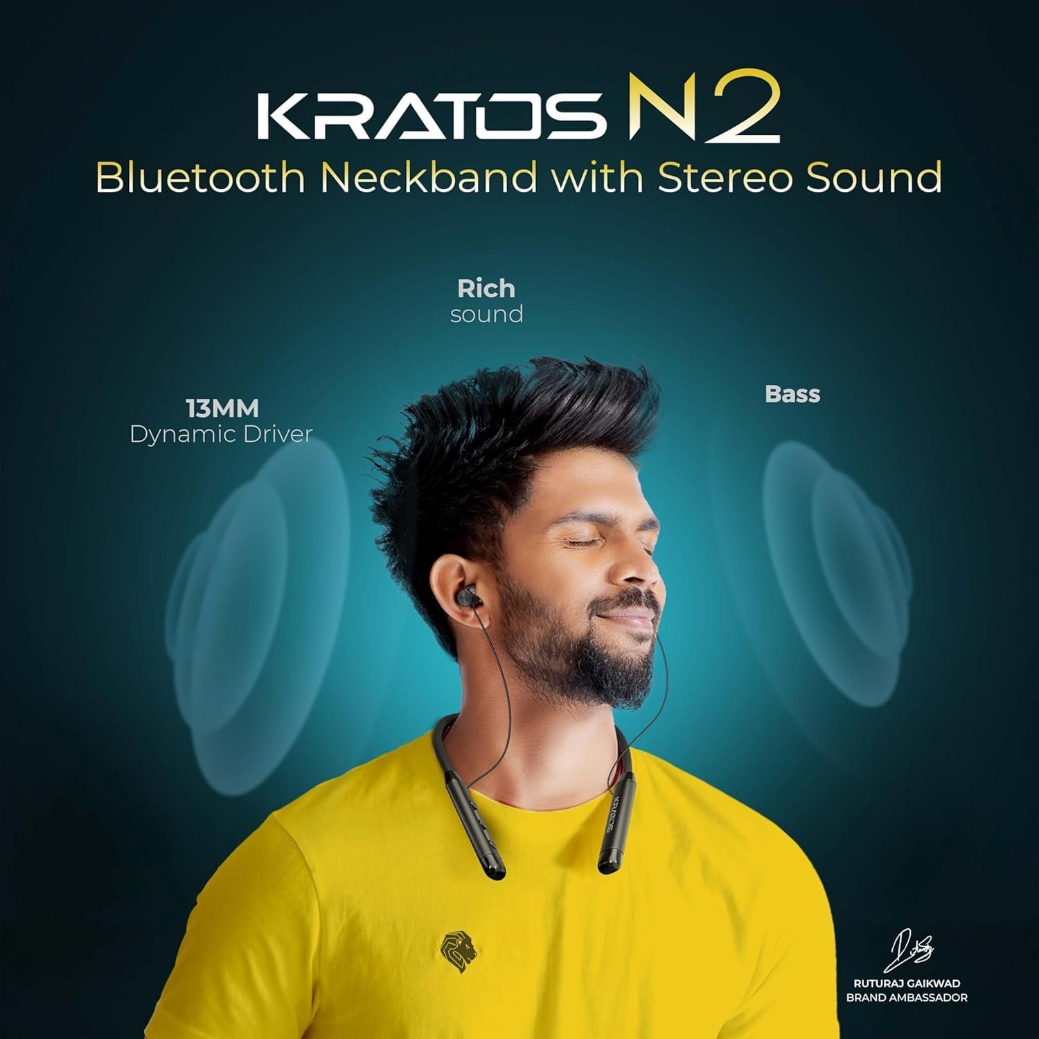 Kratos Neckband Bluetooth Headphones with 20 hrs Playtime, Deep Bass, Stereo Sound,HD Calls,Rich Music Experience,Voice Assistant,Type C Fast Charging, BT V 5.2 Neckband Earphones with Magnetic Earbud