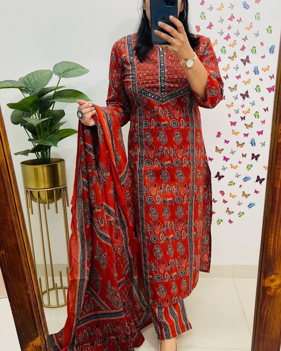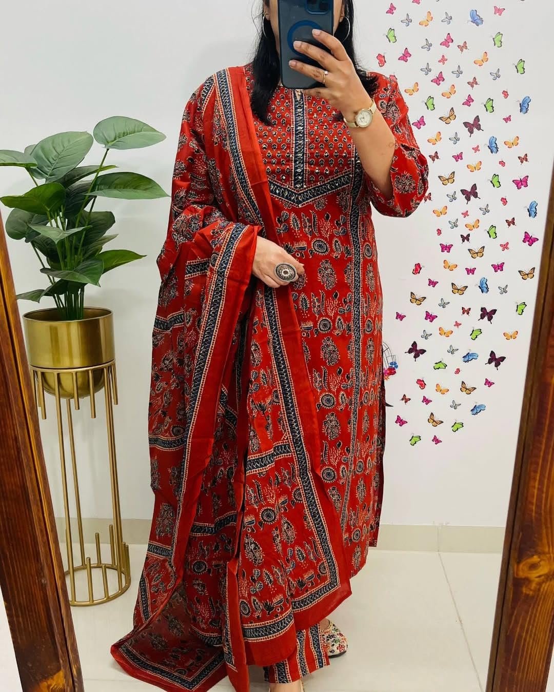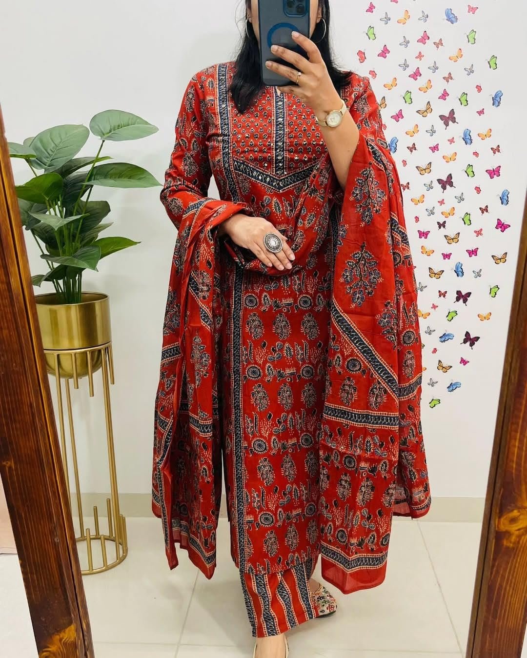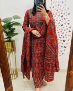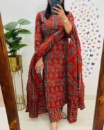 krisjan|Women’s Pure Cotton Printed with Handwork Kurta with Pants and Dupatta Set | Ethnic Set | Suit Set | Kurta Set | Wedding Suit Set