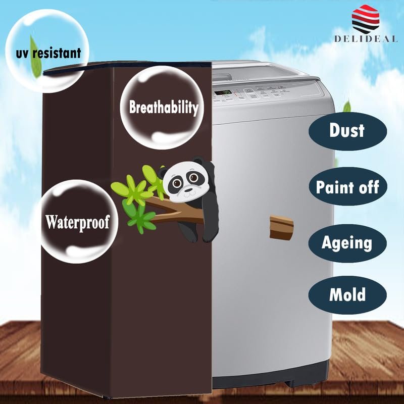 KVAR water dust Protection washing machine cover for LG 6.5 Kg 5 Star Smart Inverter Fully-Automatic Top Loading (T65SNSF1Z, TurboDrum) Coffee colour with print