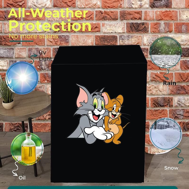 KVAR water dust Protection washing machine cover for Whirlpool 7 Kg 5 Star Royal Plus Fully-Automatic Top Loading (WHITEMAGIC ROYAL PLUS 7.0, Hard Water Wash) (Black Colour)