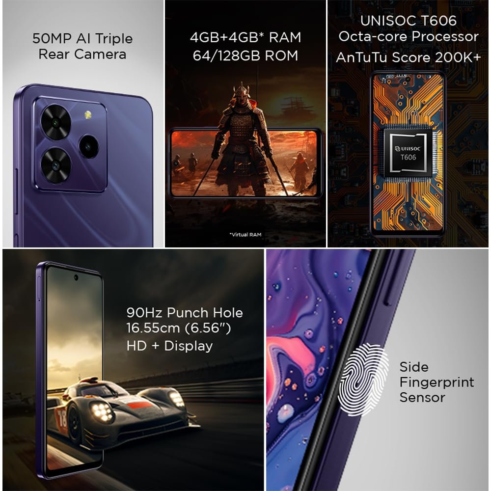 Enjoy seamless multitasking with 4GB RAM and 4GB expandable RAM, ensuring smooth performance. With up to 64GB storage, store more apps, photos, and videos without compromising speed or efficiency.