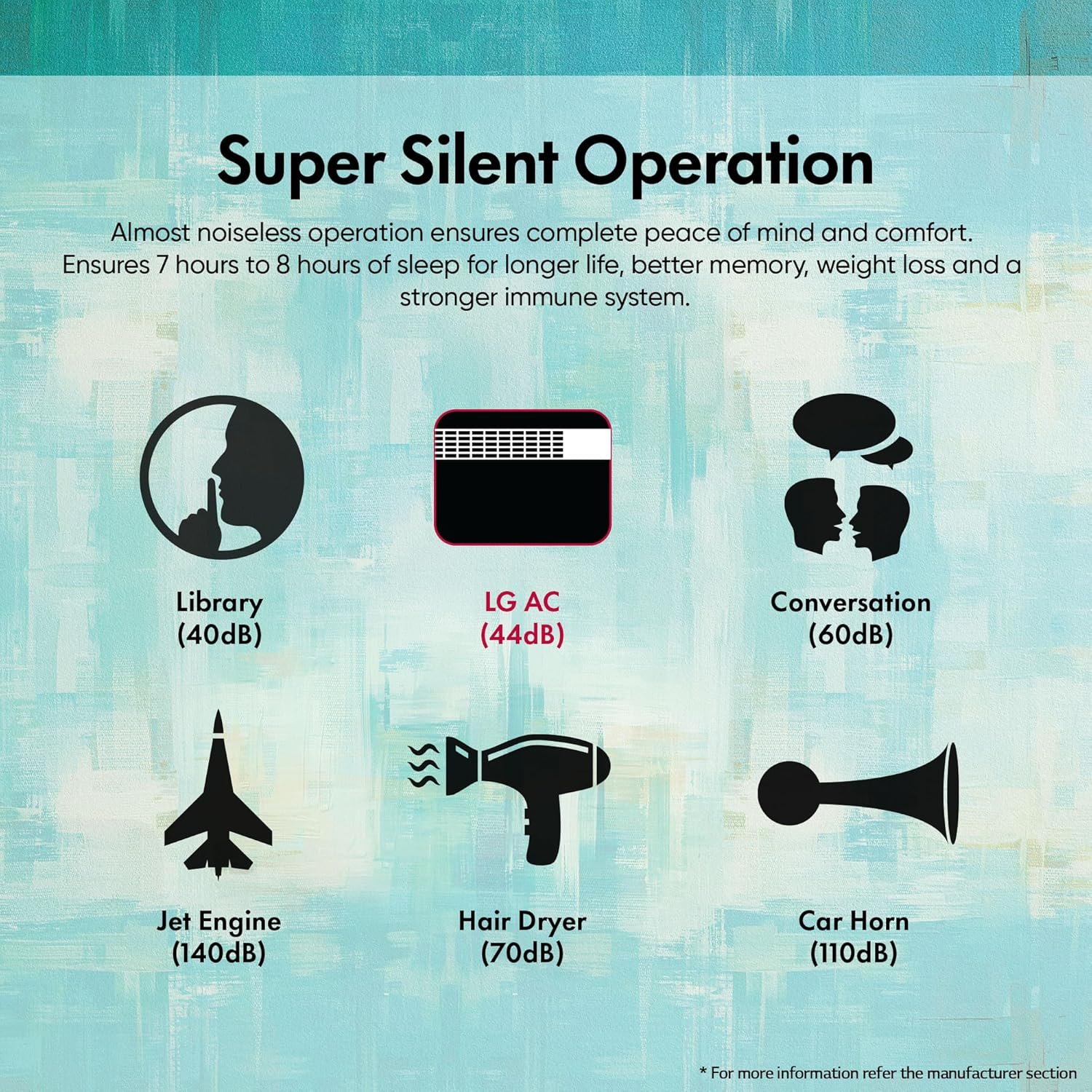 Key Features: DUAL Inverter Compressor, Convertible 4in1, Smart Diagnosis System, Top Air Discharge, Clean Filter Indicator, Ocean Black Protection; Stabilizer free operation within 120~290 voltage range, Noise Level: 44 (dB)