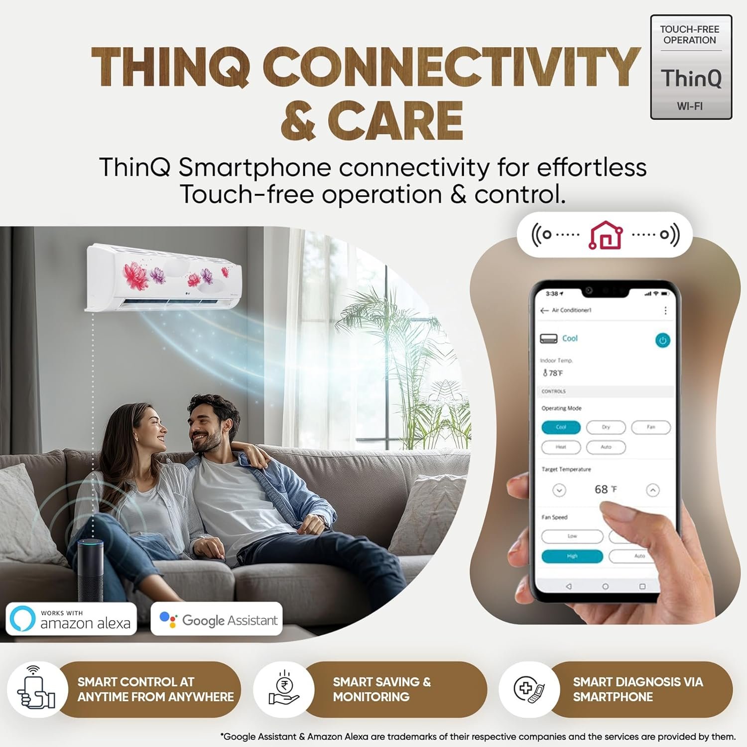 Control your AC remotely via the ThinQ app for a smart and connected experience.