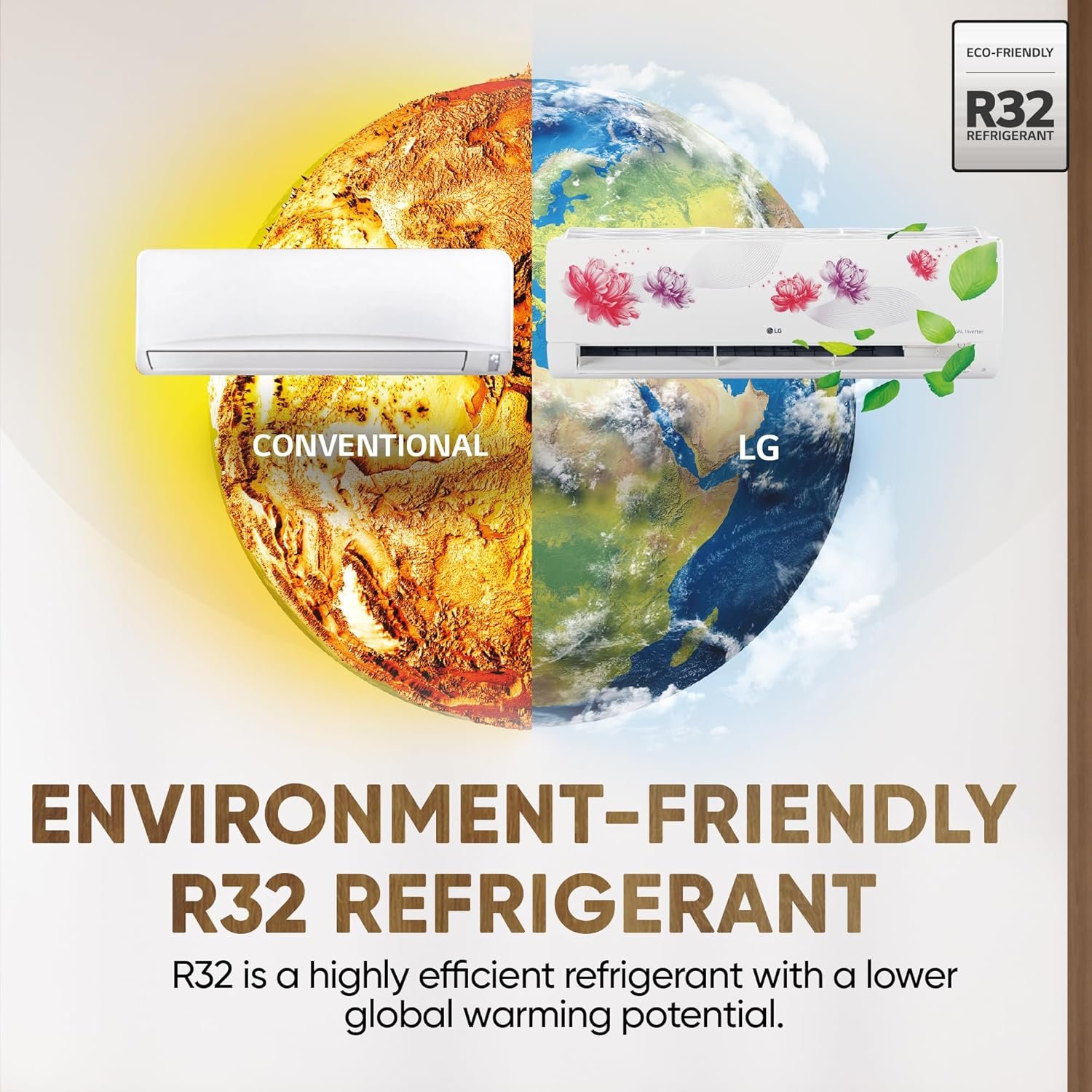 LG R32 Refrigerant ensures efficient cooling with lowest environmental impact.