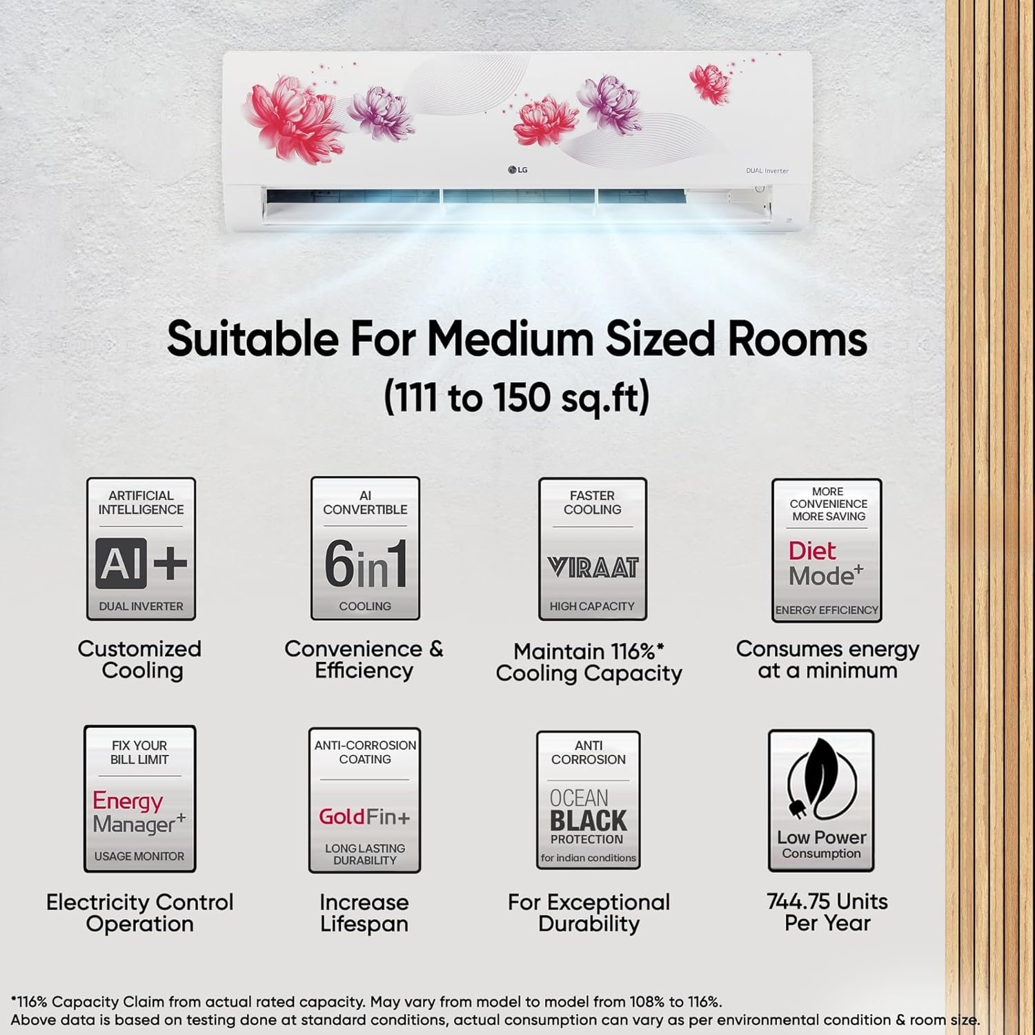 LG Split AC with Dual inverter compressor: Experience powerful cooling with LG Split AC, featuring an energy-efficient inverter compressor for optimal performance and long-lasting durability