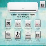 Special Features: Gold Fin+ – Increase durability, Ocean black protection, Ez Clean Filter, Low gas detection, 100% Copper Condensor, 6 Fan Speed steps; Hi grooved Copper; Smart Diagnosis System, Comfort Air, Monsoon Comfort/Fresh Dry, Auto Clean, Mute, On/ Off Timer, Sleep Mode, Auto Restart (Memory), On/Off Indicator, Dehumidifier