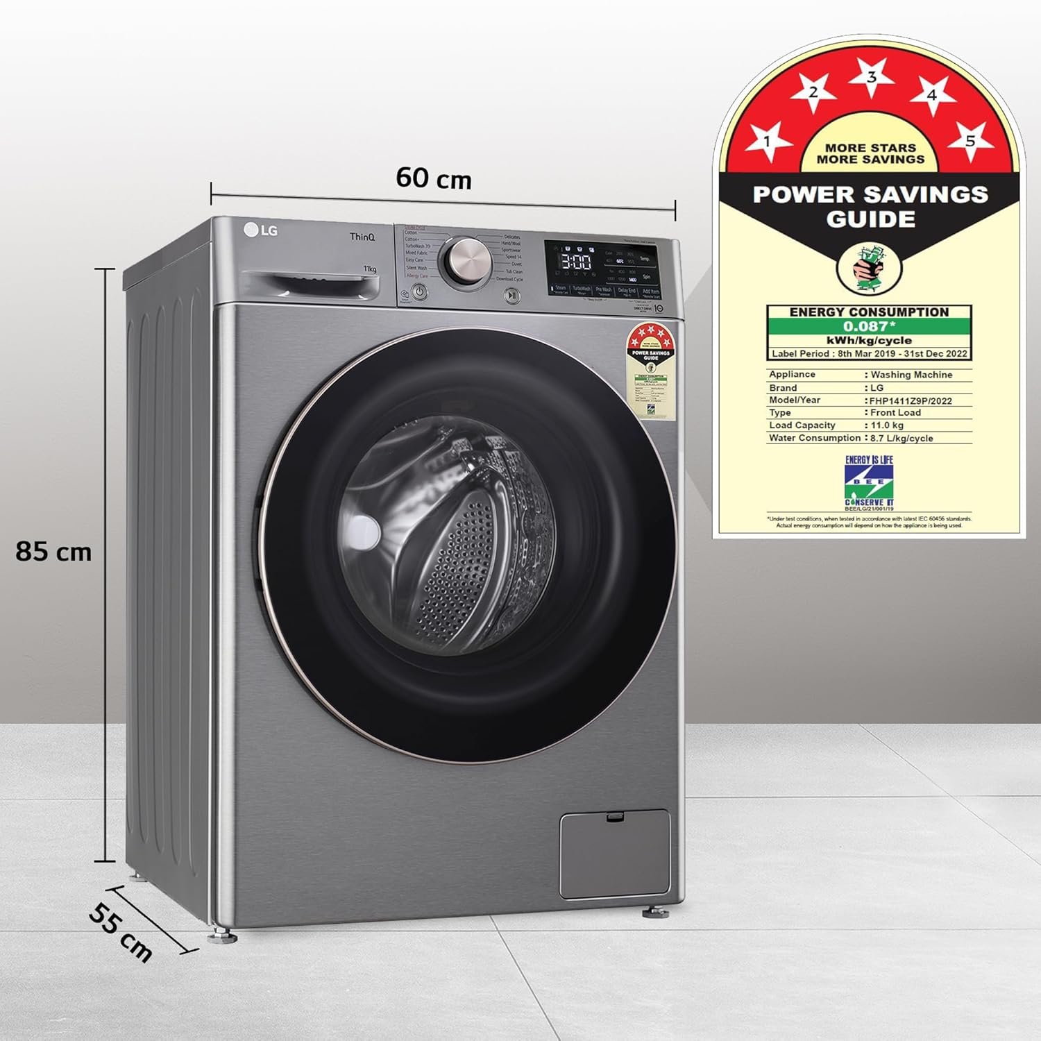 LG 11 Kg 5 Star Inverter Wi-Fi Fully-Automatic Front Loading Washing Machine with Inbuilt heater (FHP1411Z9P, Platinum, AI DD Technology & Steam+ for Hygiene)