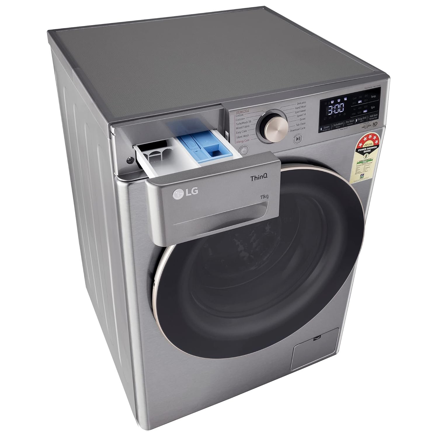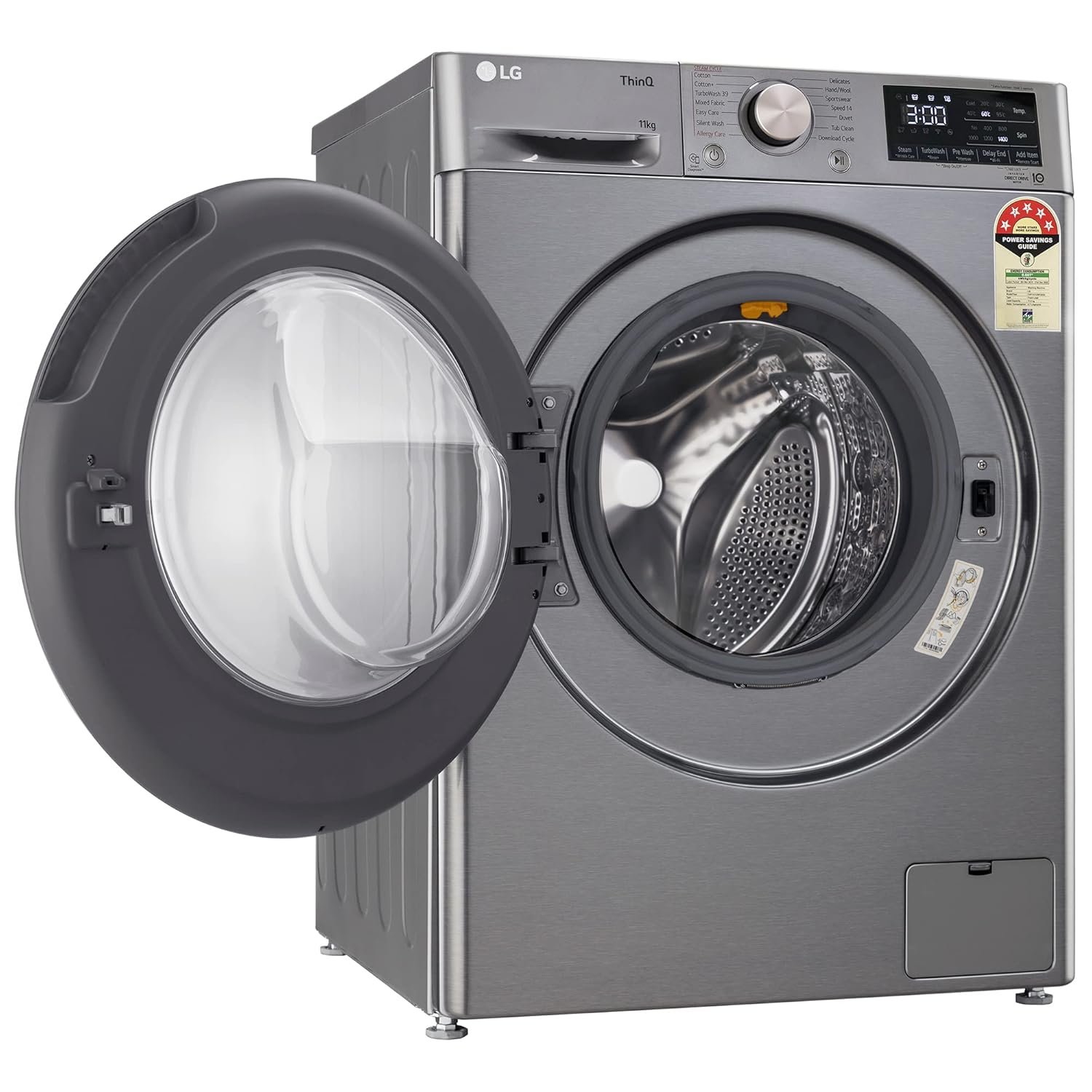 Wash Programs: 14 No. of Programs – Cotton, Cotton+, TurboWash 59, Mixed Fabric, Easy Care, Allergy Care, Baby Steam Care, Delicates, Hand/Wool, Speed 14, Dry Only, Wash+Dry (5 Kg), Tub Clean & Download Cycle | Can be downloaded multiple wash programs using LG ThinQ App