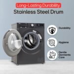 Key Performance Features: AI Direct Drive – Intelligent & Convenient Fabric Care; Direct Drive Motor- Less vibration, less noise; 6 Motion Direct Drive- Optimal wash for different fabrics; TurboWash 59 – Wash clothes in 59 Minutes*; Steam – Reduce germs & allergens with steam cycles | Bigger Drum – deigned to cater to the Indian need of washing big loads at once | Wi-Fi – control & monitor your washer anytime, from anywhere with just one app