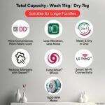 Capacity: 11 KG (Wash) & 7 KG (Dry): Suitable for large families | Each wash cycle may have a different maximum load