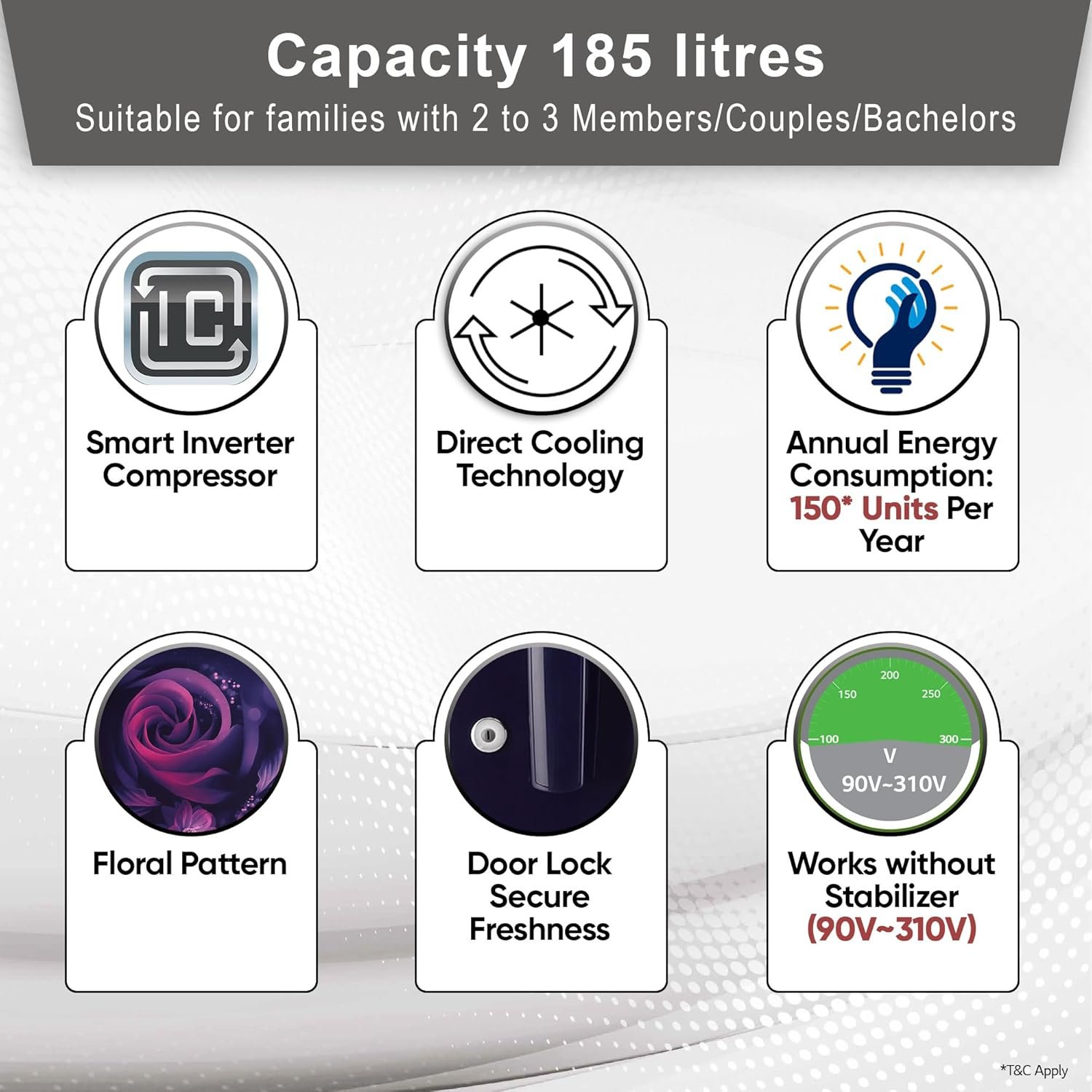Capacity 185 litres: Suitable for families with 2 to 3 members/ Couples / Bachelors | Freezer capacity: 16 L, Fresh food capacity: 169 L