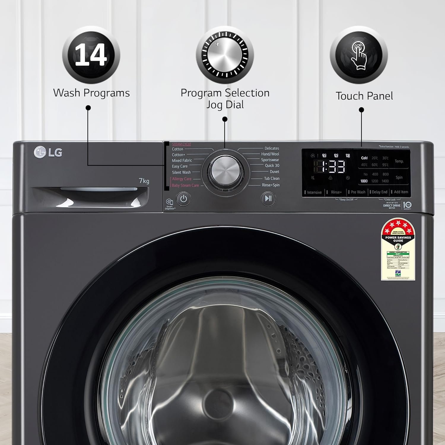 LG 7 Kg 5 Star AI Direct Drive Fully-Automatic Front Loading Washing Machine (FHV1207Z2M, Middle Black, Steam for Hygiene Wash)
