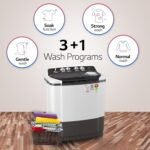 3 + 1 Wash Programs: With Gentle, Normal & Strong for diverse range of washing | Gentle: used to wash delicate and less soiled cloths, so that there is no damage to cloth fabric | Normal: used to wash soiled, dirty and sweaty cottons and linen fabrics | Soak: for bulky items like washable winter coats, duvets and quilts and Strong: used to wash heavily soiled & dirty clothes, including jeans fabric etc