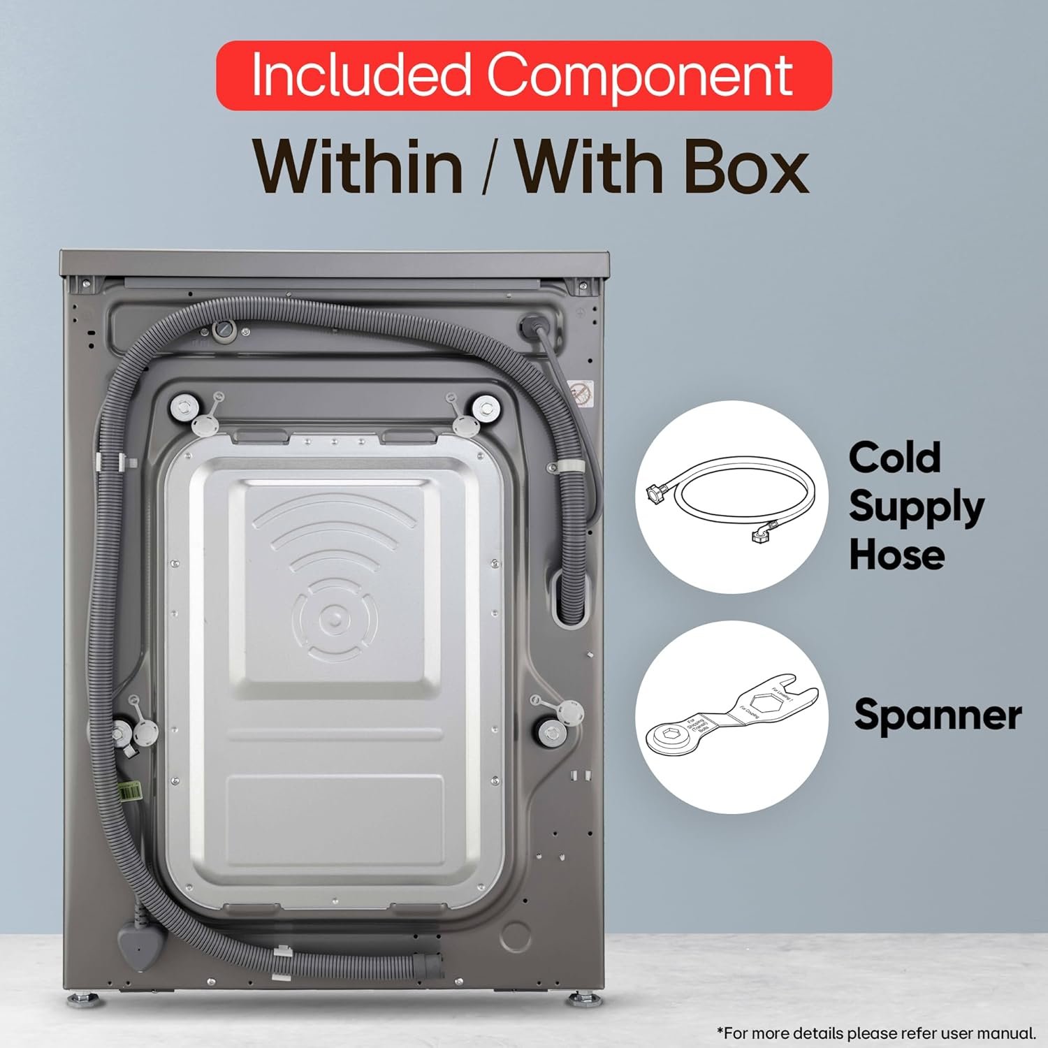 Key Performance Features: AI Direct Drive – Intelligent & Convenient Fabric Care; Direct Drive Motor- Less vibration, less noise; 6 Motion Direct Drive- Optimal wash for different fabrics; Steam+ – Reduce germs & allergens with steam cycles | Bigger Drum – deigned to cater to the Indian need of washing big loads at once | LG ThinQ with Wi-Fi – control & monitor your washer anytime, from anywhere with just one app
