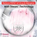 LG Steam technology in washer dryers prevents allergens, such as dust mites that can cause allergy or breathing-related problems.