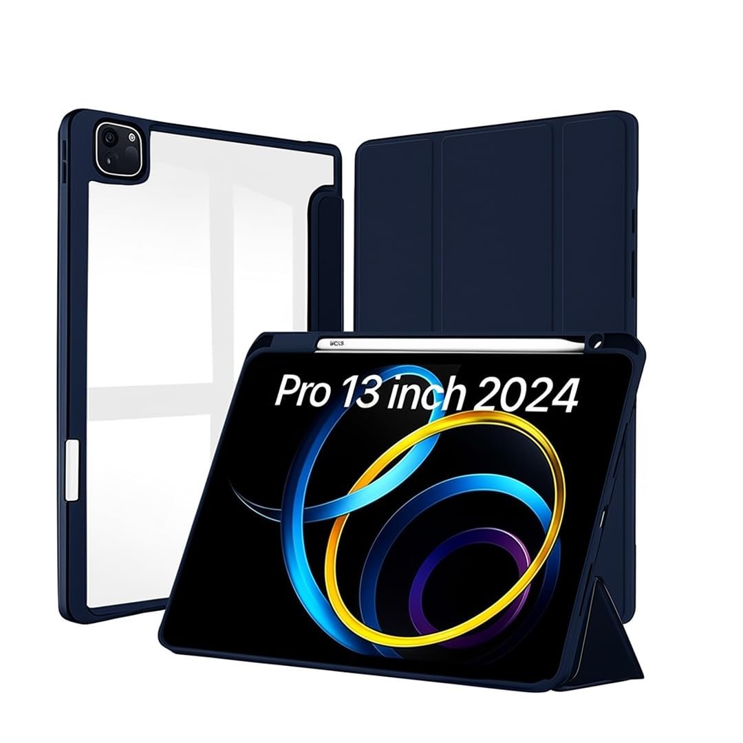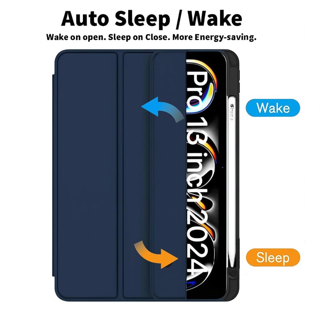 LIRAMARK Smart Case for Apple iPad Pro 13 inch (M4)(2024) [Auto Sleep/Wake Cover] [Pencil Holder] [Soft Flexible Case Cover] Evo Series – Dark Blue