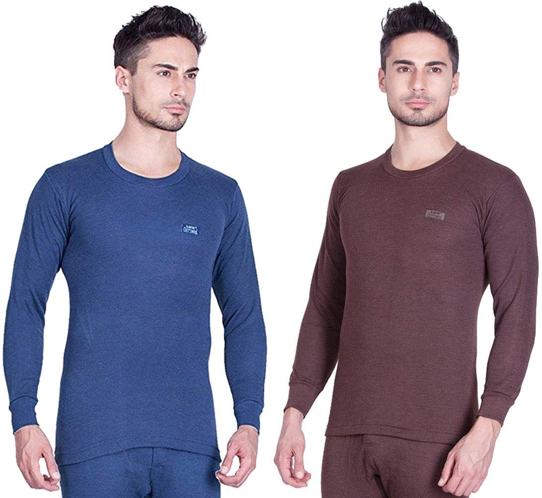 Lux Cottswool Men Round Neck Full Sleeves Upper Thermal – Pack of 2 (Multi-ColourMulti-Colour_85 cm)