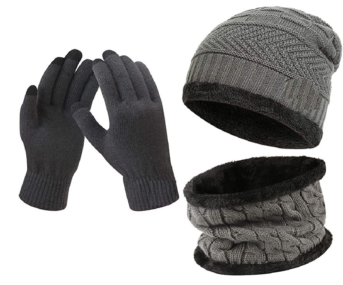 Lyonardo Winter Thick Fleece Lined Beanie woolen Cap Hat, Neck Scarf and Touchscreen Gloves Set cap for Men Women(3 set)