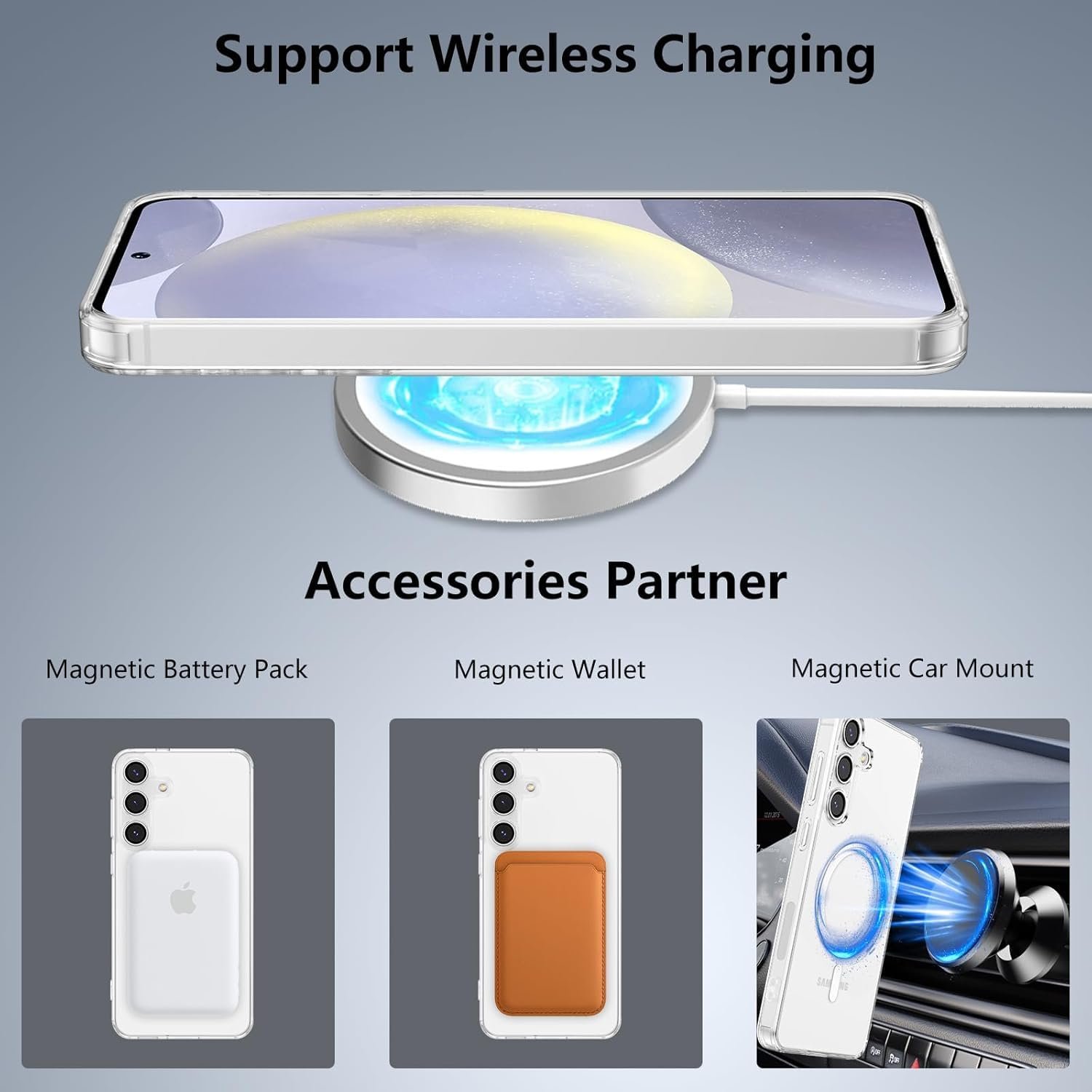 MACLEN Samsung Galaxy S24 5G Magnetic Transparent Case | Shock Proof Design & Camera Protection | Magsafe Wireless Charging case | Sleek Hard Crystal Cover – Clear Back