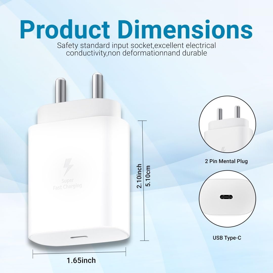 MAK 25W Type C Charger Super Fast Adapter Compatible with Samsung Galaxy M05/M15/F15/A15/M35/A35/A55/M55| M34/M14/F34/F14/F54/A14/S24/S23/S21 Fe/S23 Fe/Tab, White (A56)