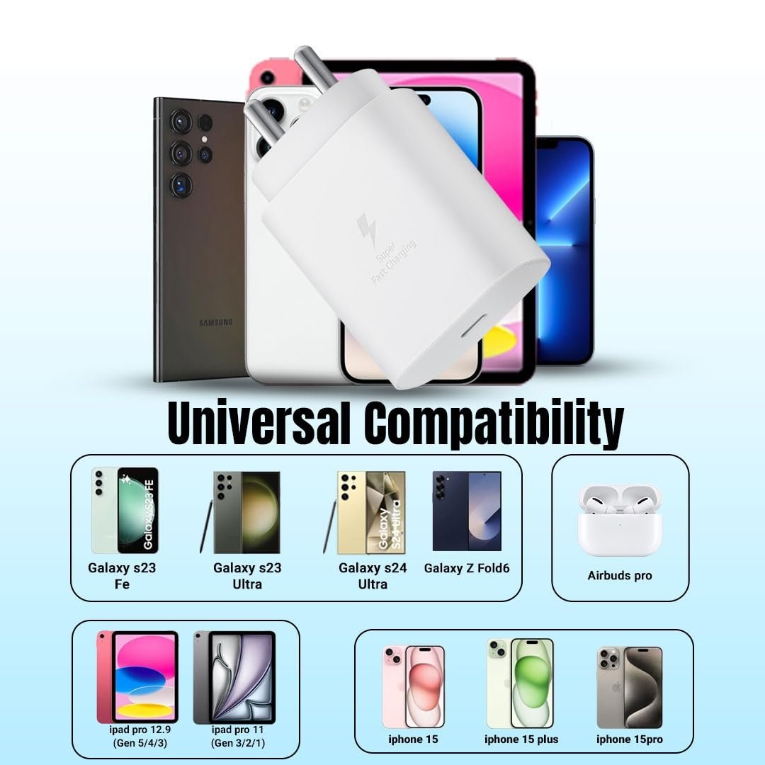 Wide Device Compatibility: Seamlessly charge a range of Samsung devices, including Galaxy A16, M05, A05, A35, M35, F05, M15, A15, A14, M14, F14, A34, F34, S24, S24 Ultra, S23 FE, Z Fold 6/5/4, and even Samsung Galaxy Tabs. Truly versatile for every gadget you own!