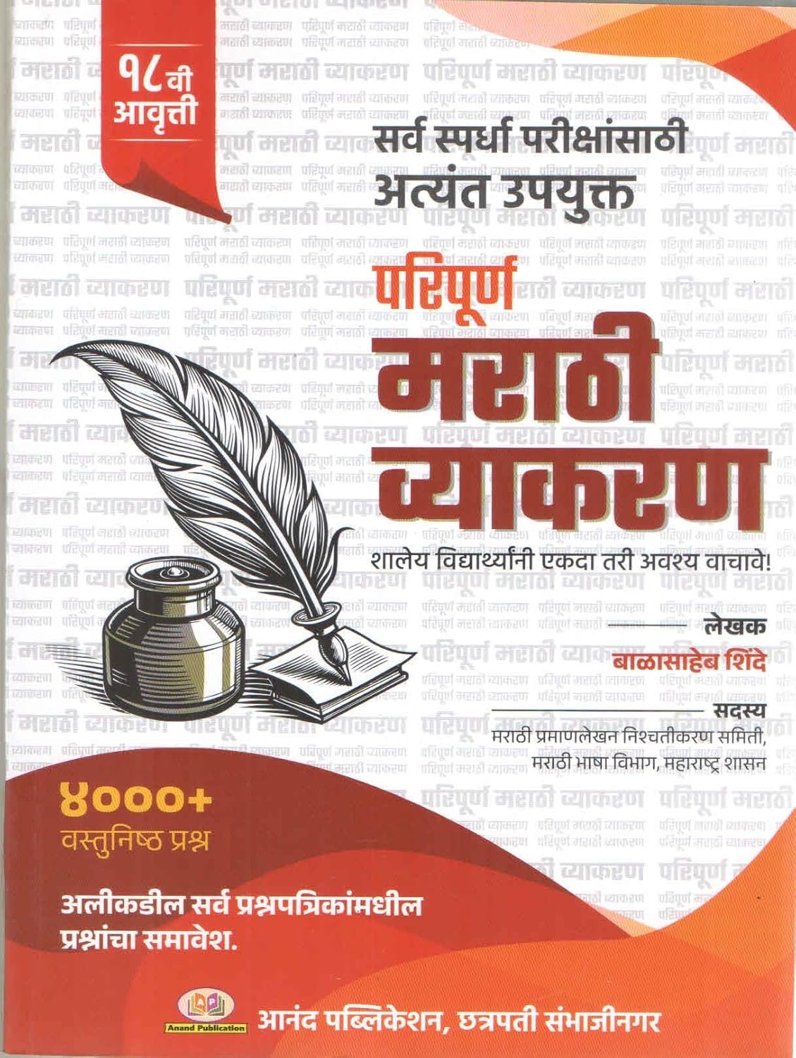 Marathi vyakaran balasaheb shinde 2024 4500+ mcq / vastunishtha prashna 17th avruti/ edition anand publication मराठी व्याकरण बाळासाहेब शिंदे 2024 4500+ वस्तुनिष्ठ प्रश्न 17 आवृत्ती