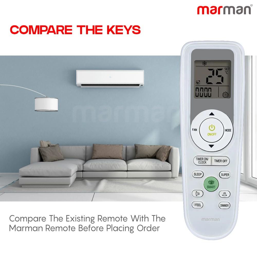 marman® Compatible Air Conditioner remotes for Original Voltas AC Remote Control Suitable for 1 | 1.5 | 2 ton Split or Window ac – Match Exactly with Old Model 181 Remote for Better Performance