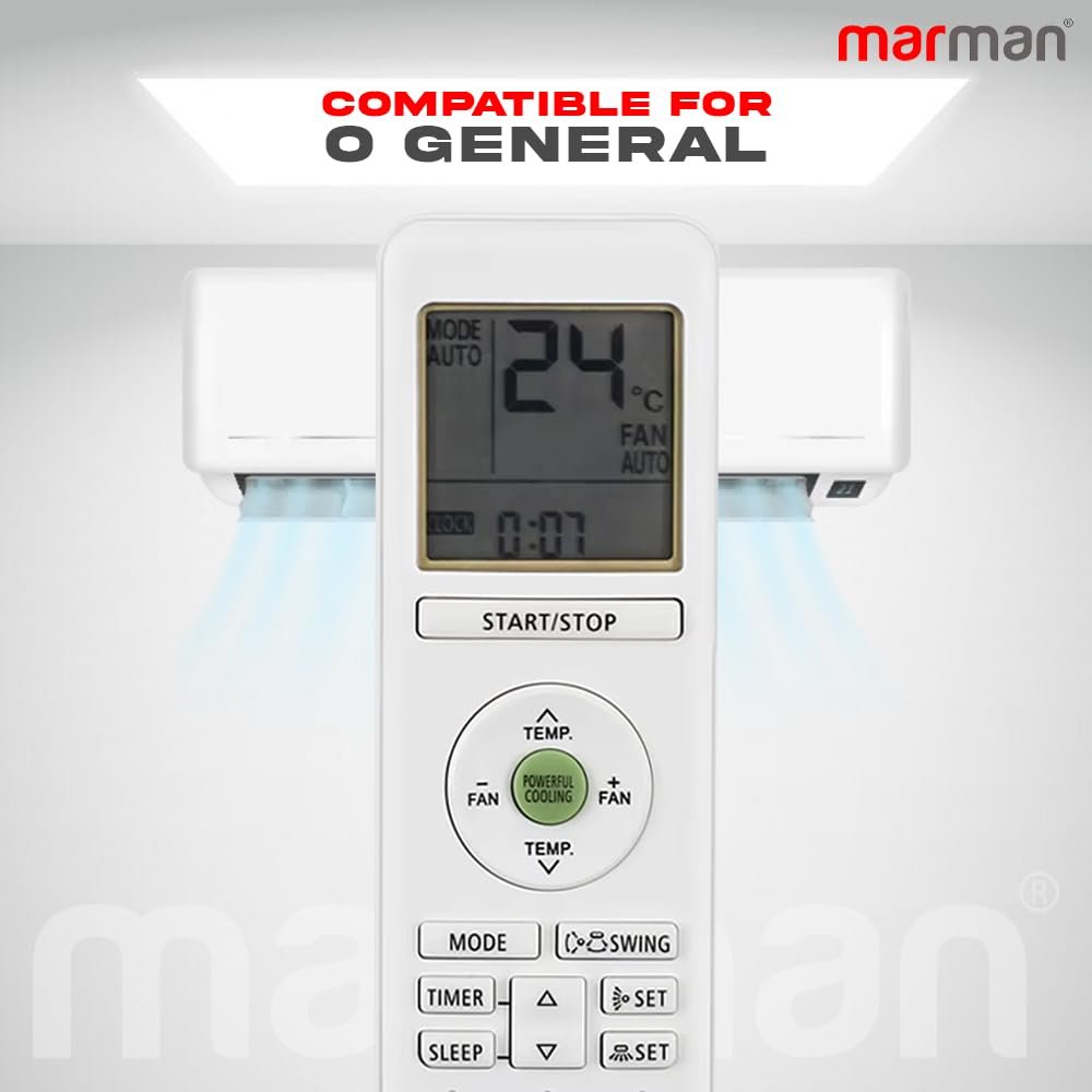 marman® Compatible O General AC Remote Original AR-RHA2E Model Suitable for 1 |1.5 | 2 | Ton Split and Window Air Conditioner – Match Exactly with Old Model 203 Remote Control