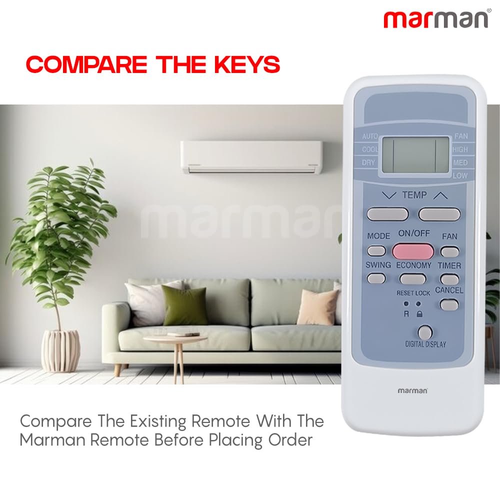 marman® Compatible with Electrolux AC Remote Original R51K/BGE Model Suitable for 1 | 1.5 | 2 ton Split or Window Air Conditioner 152A Model – Match Exactly to Replicate Genuine Remote Function