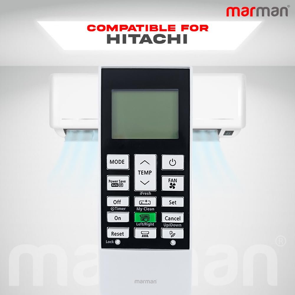 marman® Compatible with Hitachi AC Remote Model 168G Suitable for 1 |1.5| 2 Ton Split or Window AC – Match Remote Key by Key with Existing Remote Control