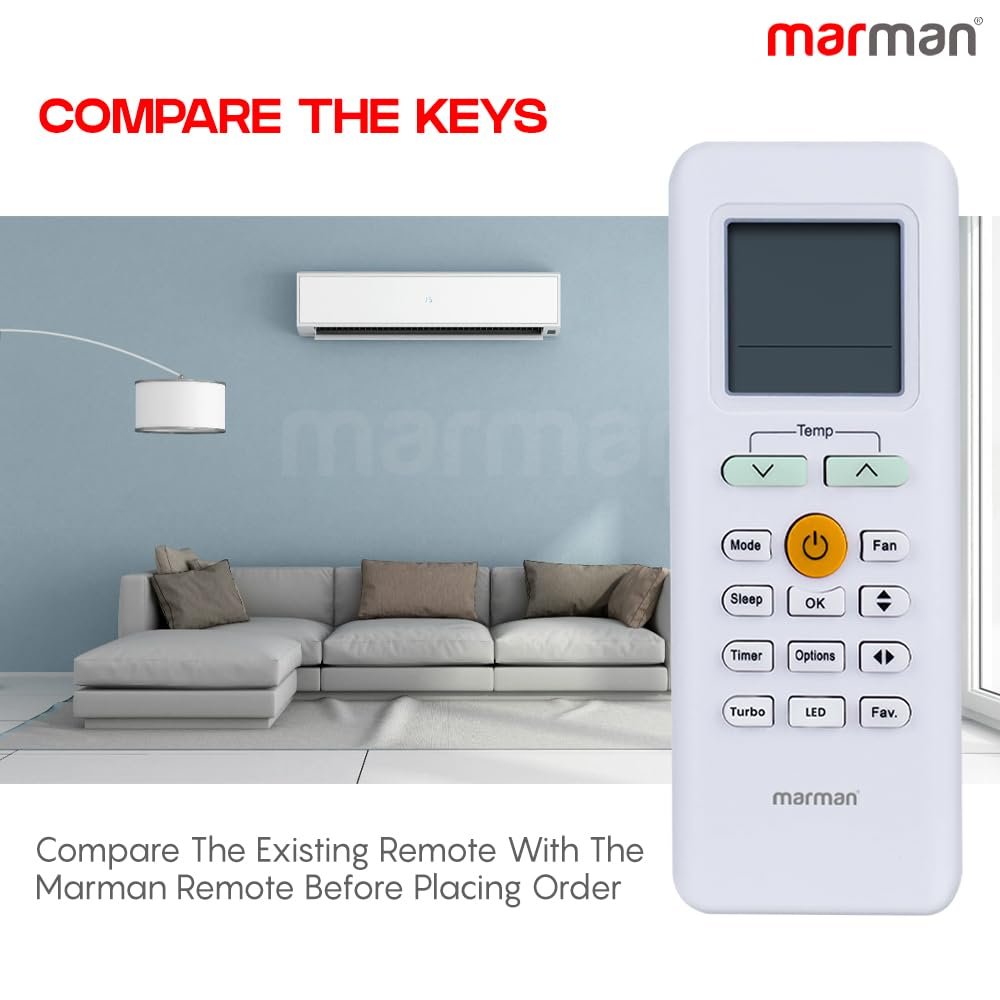 marman® Compatible with Midea AC Remote Original RG70C1/BGEF Model Suitable for 1 | 1.5 | 2 ton Split or Window Air Conditioner 205A Model – Match Exactly to Replicate Genuine Remote Function