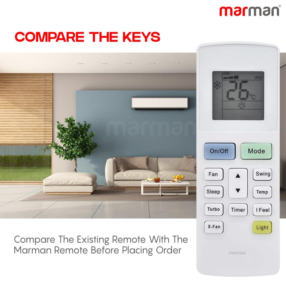 marman® Compatible with Onida AC Remote Original Model 222A Suitable for 1 | 1.5 | 2 Ton Split and Window Air Conditioner – Match Remote Keys Exactly to Replicate Genuine Remote Function