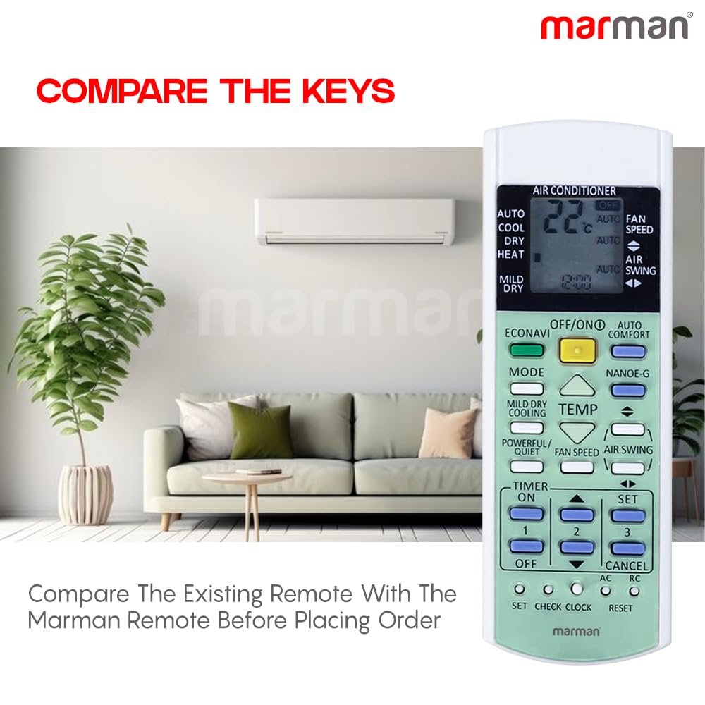 marman® Compatible with Panasonic Air Conditioner Remote Control 29B Model Suitable for 1 | 1.5 | 2 ton Split and Window AC – Match Exactly to Replicate Genuine Remote Function