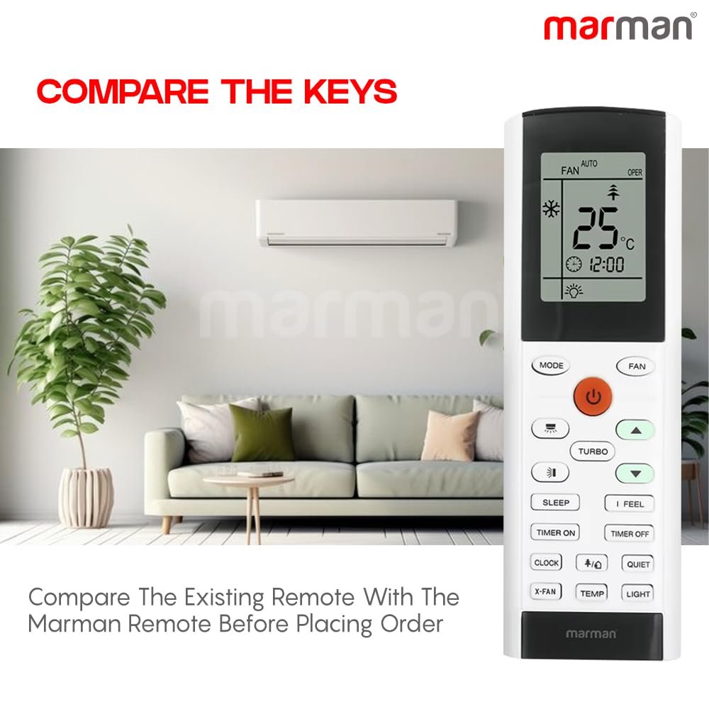 marman® Compatible with Voltas AC Remote Original YACIFB YAC1FB Model Suitable for Split or Window 1 | 1.5 | 2 Ton Air Conditioner Model 193 – Match Exactly to Replicate Genuine Remote Function
