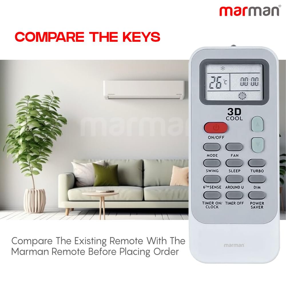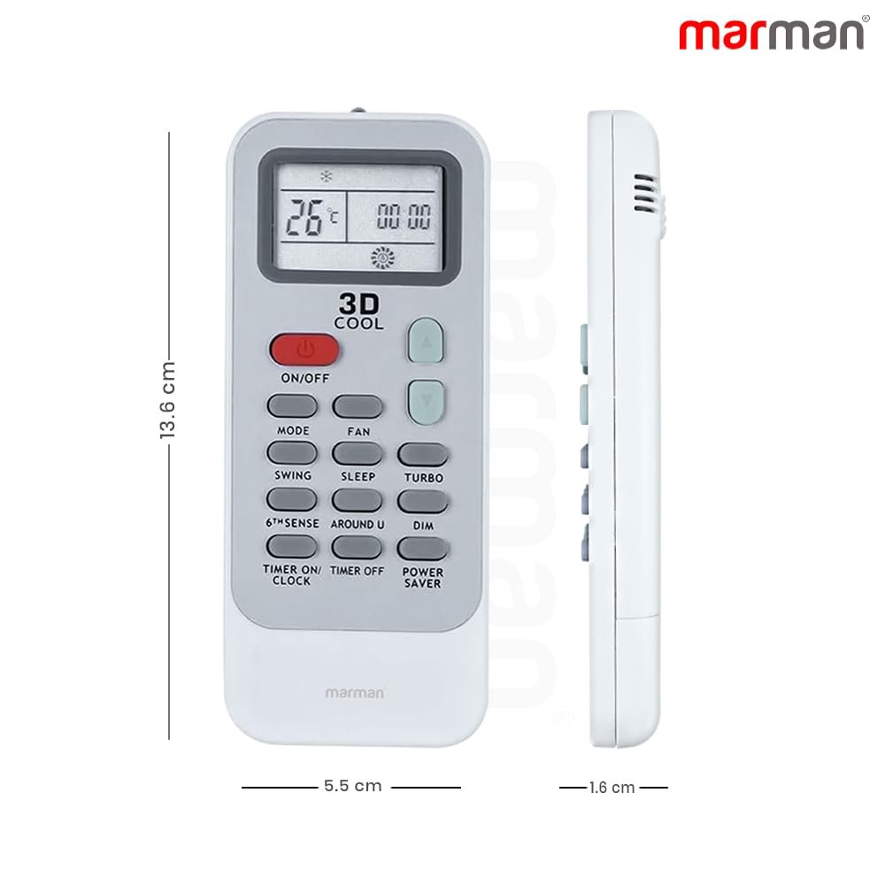 marman® Compatible with Whirlpool AC Remote Original DG11J1 Model 129 Suitable for Inverter and Non Inverter Air Conditioner 1/1.5/2 Ton Split & Window AC – Match Exactly with Old Remote Controller