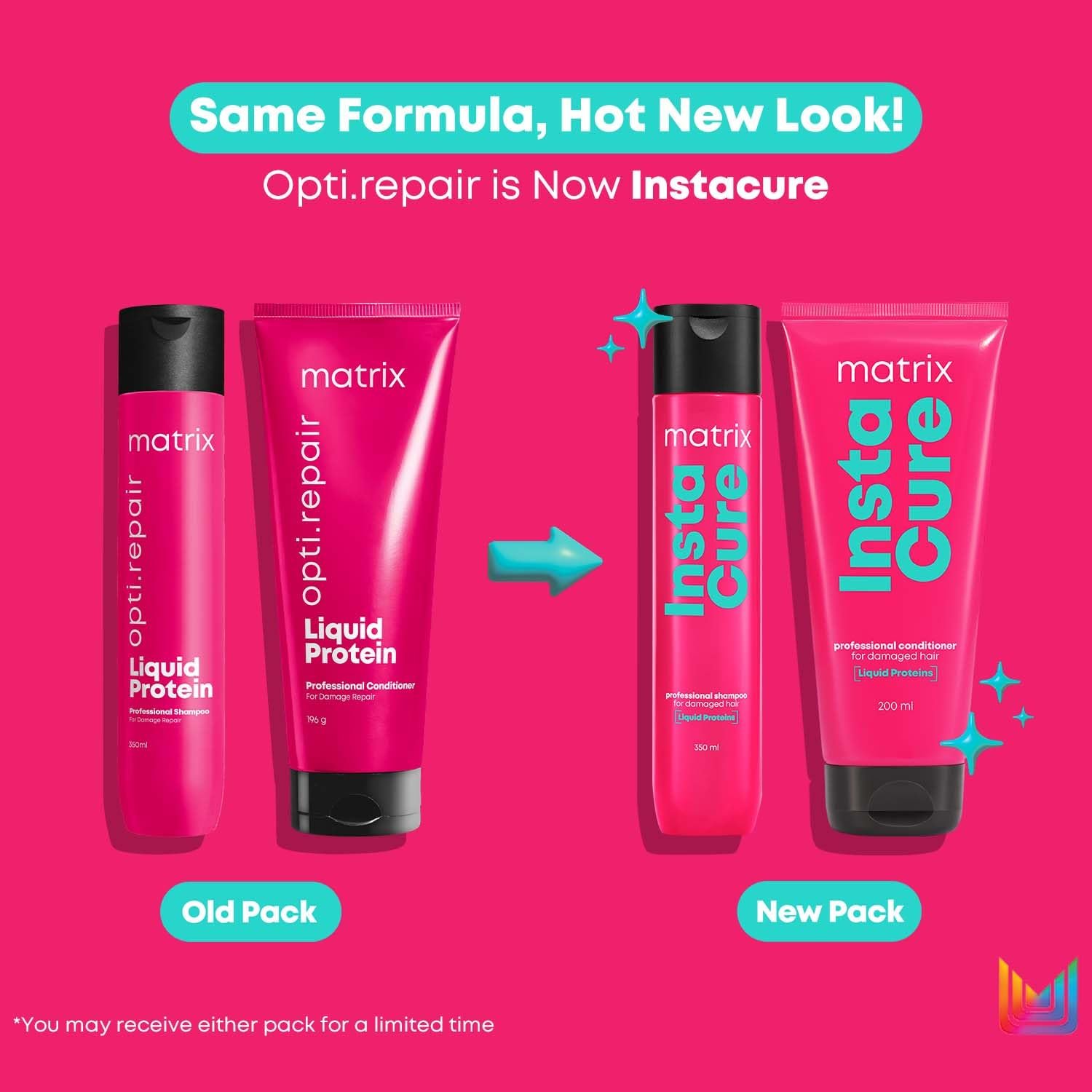 Matrix Insta Cure Professional Liquid Protein Shampoo + Conditioner for Damaged Hair| Ditch Damage from the 1st Use*| Reduced Split Ends, Breakage, Knotting, (350ml + 200ml)
